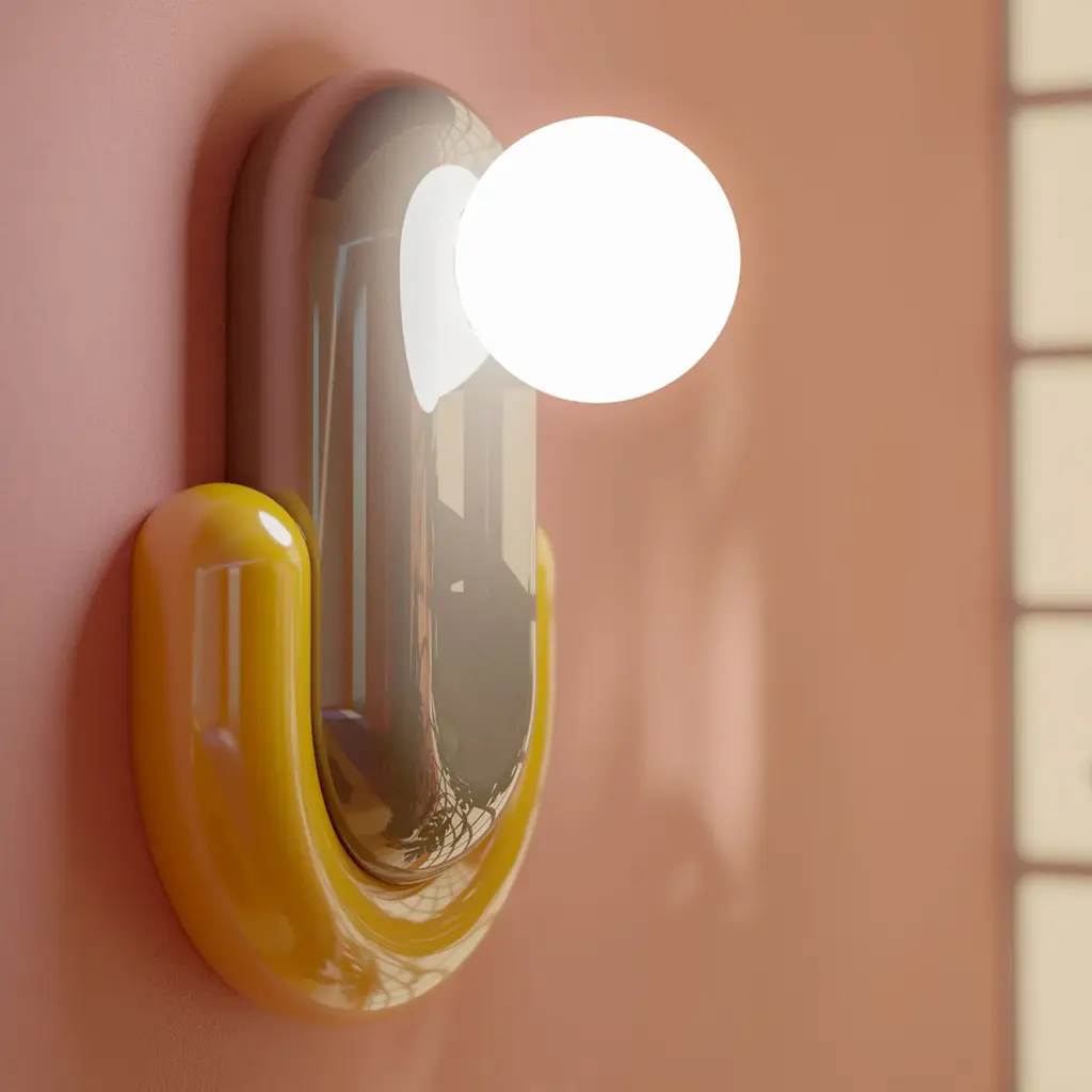 Illuminate your space in playful elegance with the Eclair Wall Sconce from Ferroluce. Handcrafted with ceramic and blown glass, this fixture boasts a flawless blend of form and function, allowing you to experience the perfect balance of shapes and proportions, while indulging in softly diffused glow. Highlights