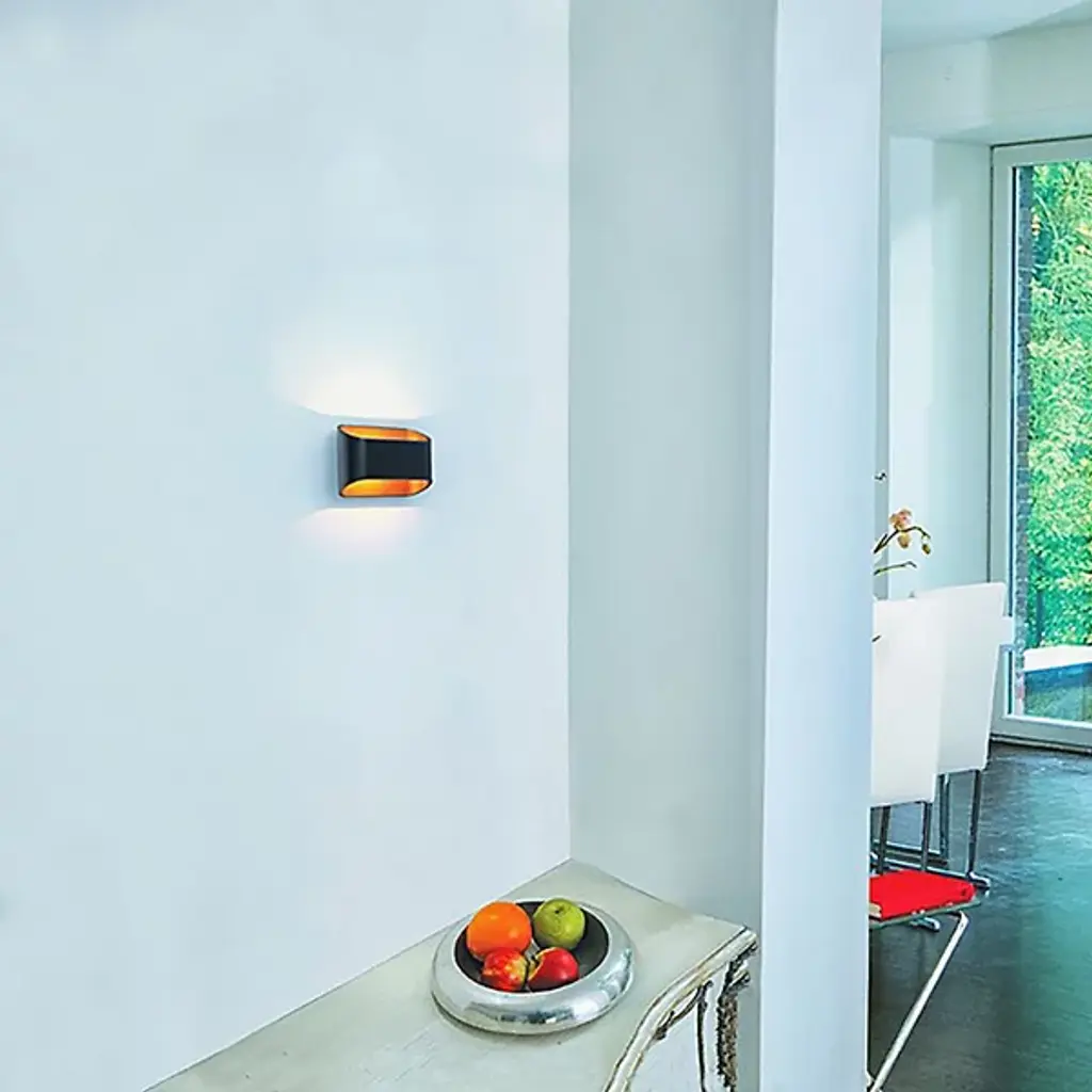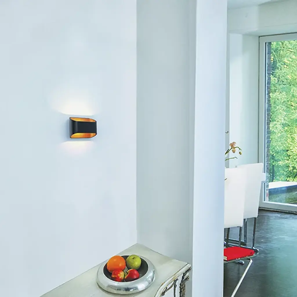 An organic design that illuminates from both sides of its elliptical body. The Bruck Lighting Eclipse 1 Wall Sconce is an indirect LED sconce that can be easily mounted vertically or horizontally for a customizable lighting effect along your walls. The fixture is made of extruded aluminum and includes an onboard driver. Available in Brushed Chrome exterior housing with White Inner reflector or Black exterior housing with Gold Inner reflector. Covers a standard j-box.