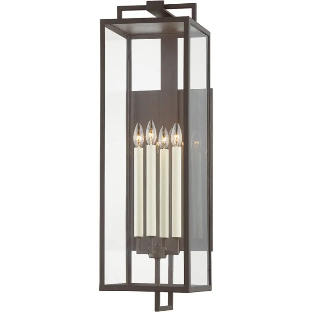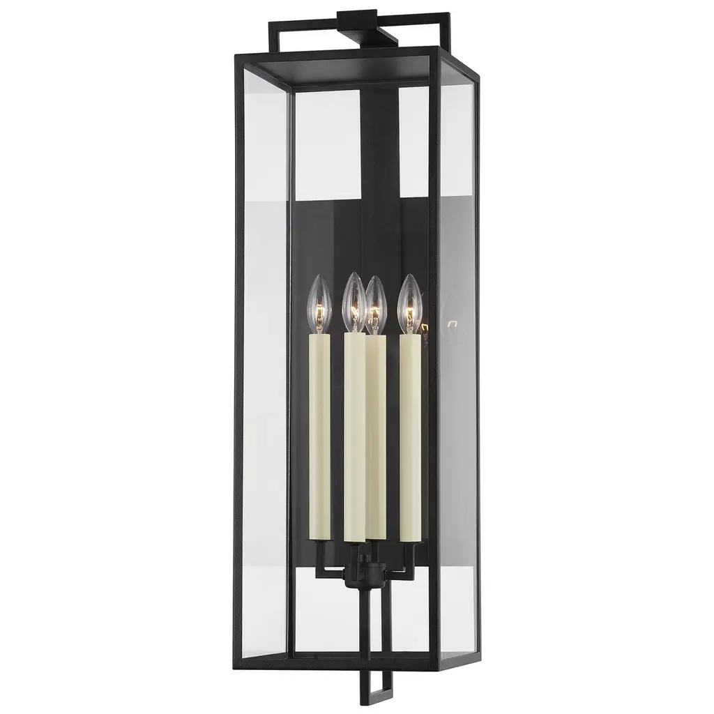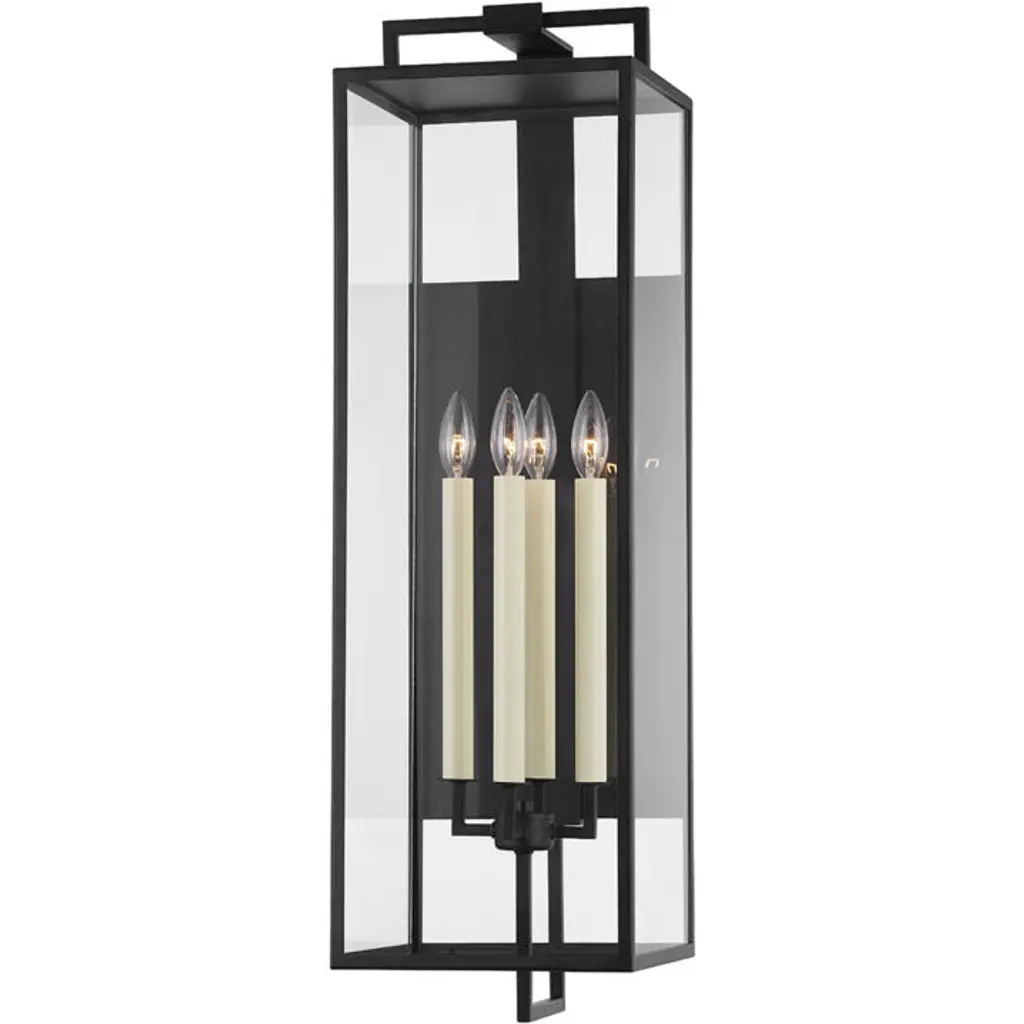 The Eden Wall Sconce is a modern yet industrial cage lantern with a streamlined design. A metal structure with a refined finish frames four clear glass panels to reveal the candle-inspired bulbs. Beautiful from each angle, the sconce brings subtly warm light wherever it is styled.