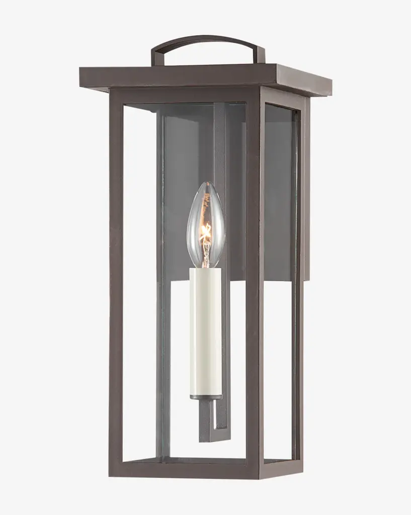 The Eden Wall Sconce is a modern yet industrial cage lantern with a streamlined design. A metal structure with a refined finish frames four clear glass panels to reveal the candle-inspired bulbs. Beautiful from each angle, the sconce brings subtly warm light wherever it is styled.