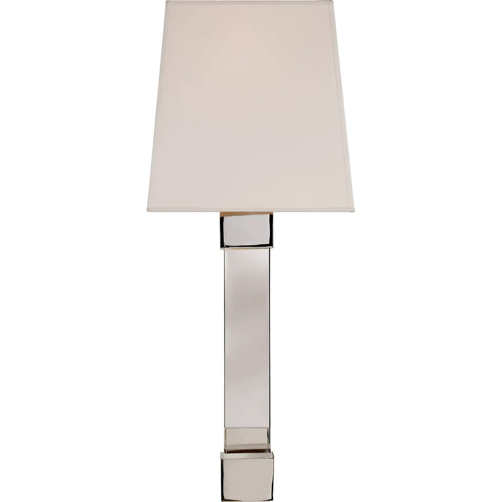 The Visual Comfort Signature, formerly known as Visual Comfort, Edgar Tall Wall Sconce blends the ornate with the simple. The stem is made of clear crystal, which is juxtaposed against metal end caps and a silk shade. A chic update to the iconic form, the understated beauty of this sconce will illuminate your space with a graceful yet elegant presence.