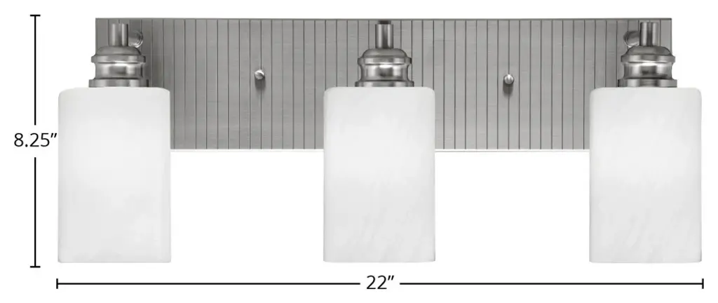 Transform your space with the sleek Edge 3-Light Bath Bar. Installation is a breeze - simply connect it to a 120 volt power supply and enjoy. Cleaning is effortless, just use a damp cloth and do not use chemical cleaners. Explore the range of finish, glass size, and color options to find the perfect match for your space.Features:• Easy to install and use with 120 volt power supply• Create the perfect ambiance with dimmable lighting (dimmer not included)• Energy-efficient and LED compatible for long-lasting illumination• Easily maintain cleanliness with a damp cloth, do not use chemical cleaners• Streamlined installation and seamless integration with hardwired design• Versatile lighting options with compatibility for standard E26 medium base bulbs• Damp location rated for safe use in moist environmentsGeneral Information:• Mounting Direction: VerticallyDimensions:Bathroom Vanity Lighting• Assembled Product: 22 inches wide x 7.25 inches deep x 8.25 inches high• Shade Width: 4 inches• Wire Length: 9 inchesRequirements:• Power Consumption Wattage: 60 watts• Maximum Voltage: 120 volts• Minimum Voltage: 120 volts• Bulb Base: E26• Bulb Shape: StandardFor over 40 years, Toltec Lighting has been dedicated to creating extraordinary lighting experiences for our customers. Our extensive online catalogue showcases a diverse range of contemporary and timeless collections, offering over 40 glass shade choices to personalize each fixture to your unique taste. Whether you seek traditional, transitional, or contemporary styles, our fixtures effortlessly complement any decor. With an unwavering commitment to quality, value, and exceptional service, we prioritize your satisfaction by ensuring hassle-free transactions. Toltec Lighting stands proudly as a beacon of reliability and brilliance, and we look forward to illuminating your home for years to come.