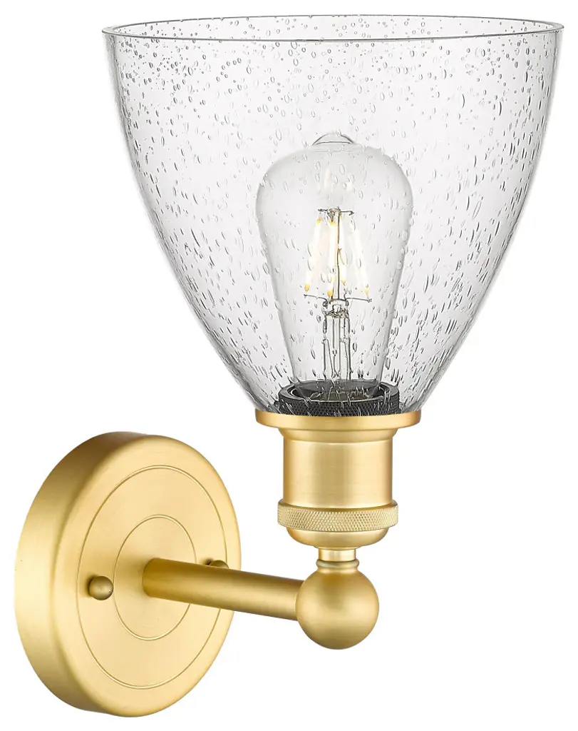 Edison Bristol Glass 1-Light 8" Sconce, Satin Gold Finish, Seedy Shade