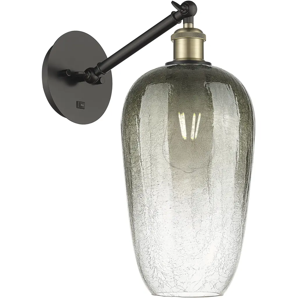 Edison Brookhaven Flute Armed Sconce Wall Light In Matte Black, Slate Glass