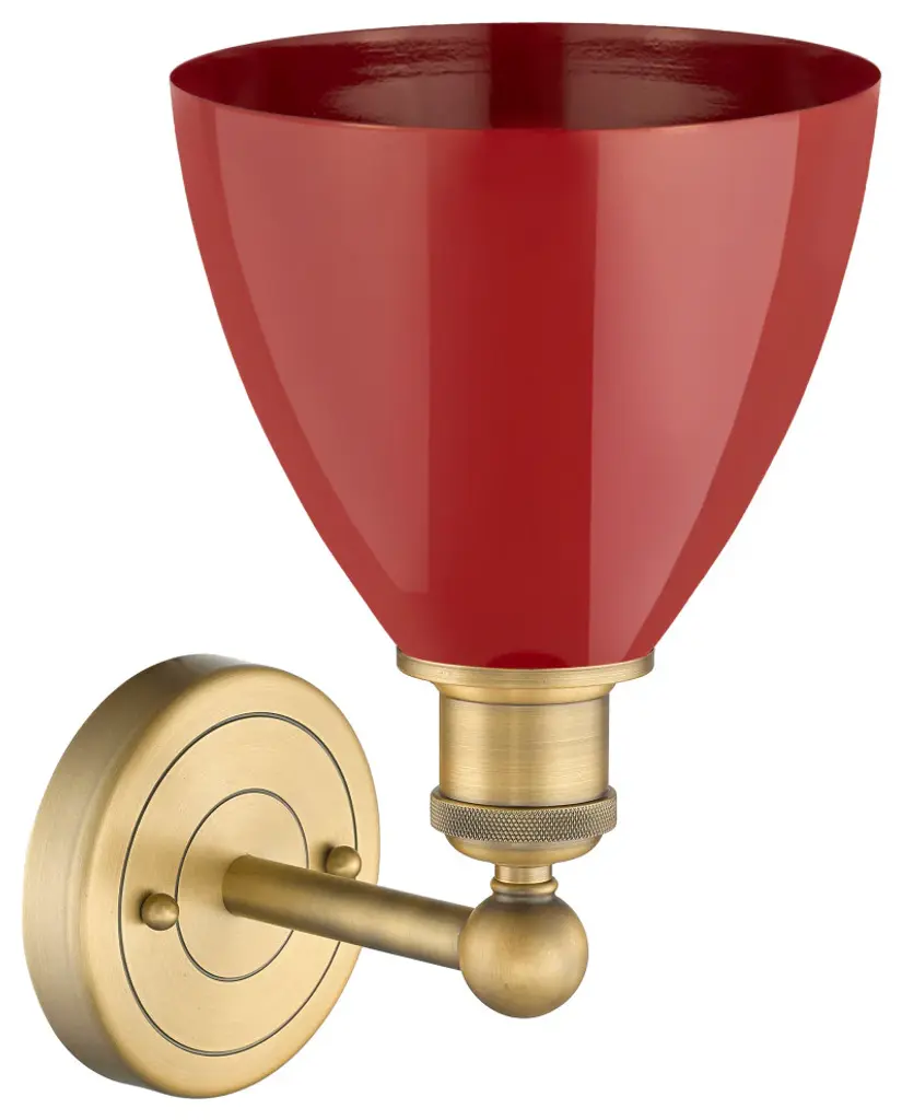 Edison Plymouth Dome 1-Light 8" Sconce, Brushed Brass Finish, Red Shade