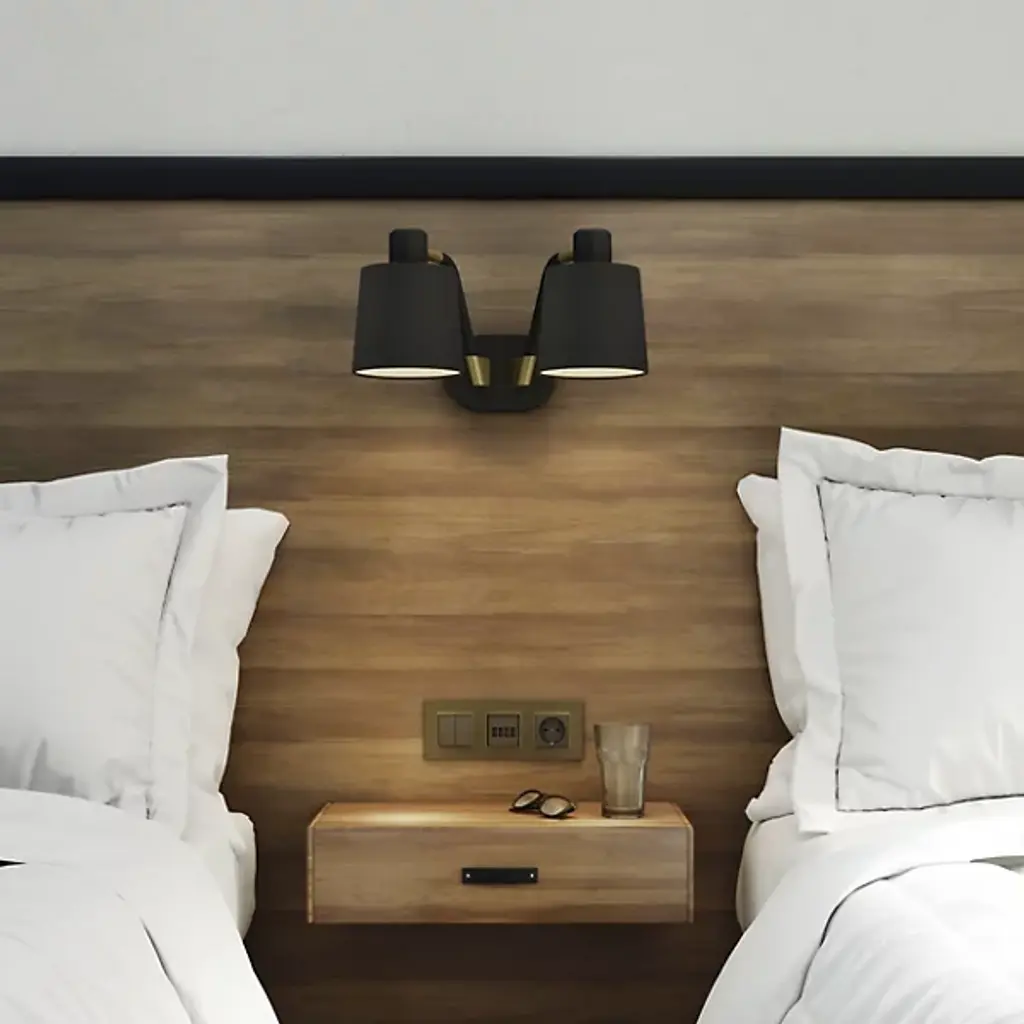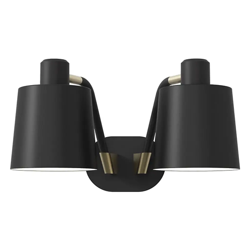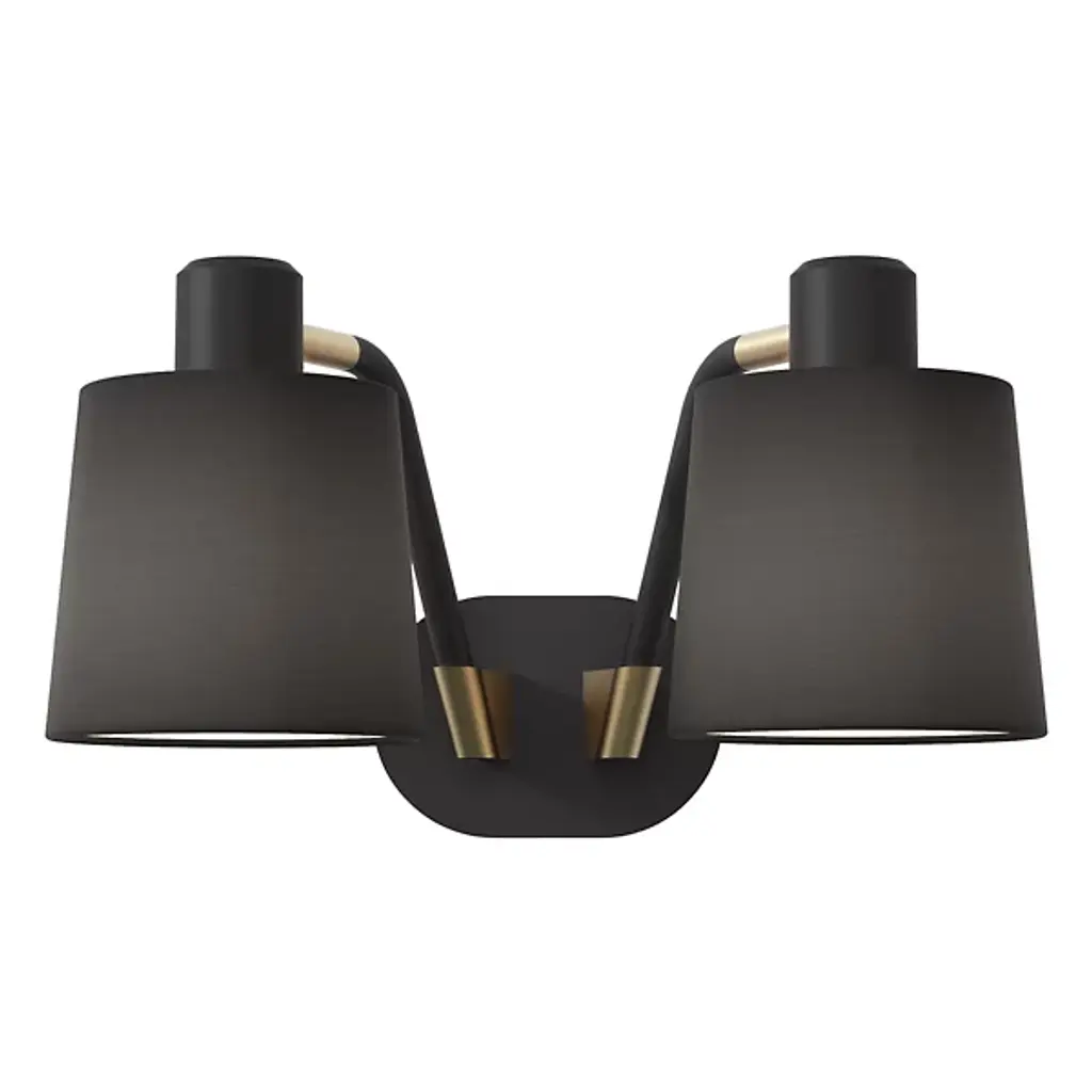 Add an elegant accompaniment to your indoor wall spaces with the Edward Twin Wall Sconce from Astro Lighting. An elegant and refined fixture equally excellent for use as a reading light or hallway illuminator, it uses an oval wall plate to suspend two upward arching stems that each terminates in a posable LED lamp set beneath a tapered drum shade. The matte texture of the metal plate and stem contrast well with the bright metal of the accent elements, creating an intriguing visual spectacle.