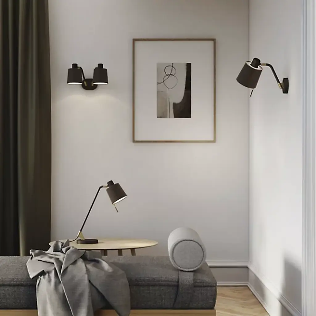 Add an elegant accompaniment to your indoor wall spaces with the Edward Twin Wall Sconce from Astro Lighting. An elegant and refined fixture equally excellent for use as a reading light or hallway illuminator, it uses an oval wall plate to suspend two upward arching stems that each terminates in a posable LED lamp set beneath a tapered drum shade. The matte texture of the metal plate and stem contrast well with the bright metal of the accent elements, creating an intriguing visual spectacle.