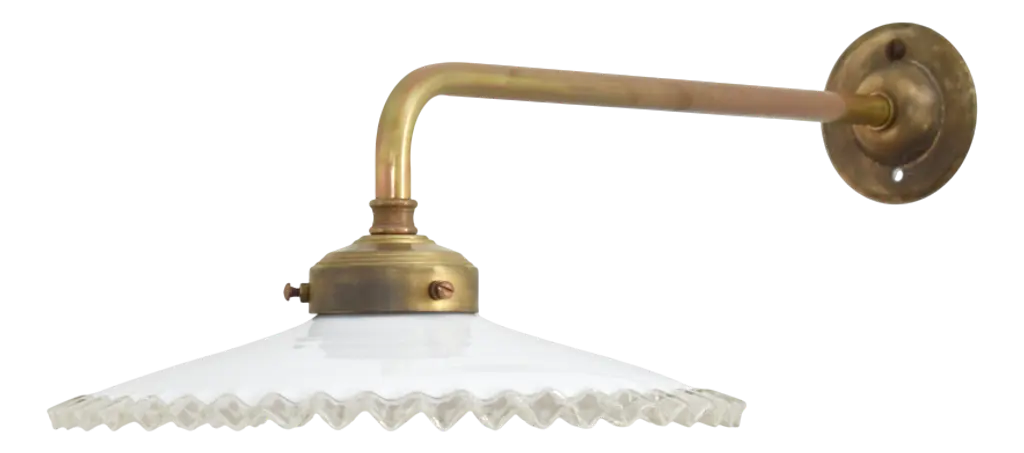 Eger II is a wall lamp made of brass available in different finishes.Finishes: Antique, Shiny brass, Matt brass, Shiny nickel, Matt nickelCapacity: 1x60 W E14Classical, but sleek, gracile, armed, neo-baroque wall light with ram head decor. The lamp was inspired by the original from the end of 1800s. Either with antique finish or gold, the wall light is a highly elegant deco of your bedroom, corridor or public hall. Should you like it even more extravagant, ask for a nickel finish. The backplate and the decorated arms are re-chiselled with greatest care with special attention to details. The lamp can be fitted with conical or round sandblasted glasses which are carved Murano style in two variations. It is 100 % Hungarian product. We produce it from pure brass in shiny, antique and nickel finishes. Its socket is porcelain one, so it can be fitted with traditional, energy saving and LED bulbs.Take some time to have a really close look at the lamp: it is, just like every lamp of ours, crafted with great care, just like a piece of jewellery. Our well-known trademark is proportionality, which took years to design and refine.In order to manufacture the lamp 14 to 16 work stages are required, depending on the finish. Handicraft technology is time consuming (some work stages take hours), it requires wide knowledge and expertise.The chandeliers of this collection have a central shade surrounded with either conical or open shades. The wall lights have matching shades, too. The graceful table lamp goes lovely with a feminin desk. The ceiling fitting of this collection has an elaborate motive of 5 rams holding a chain in their muzzle.