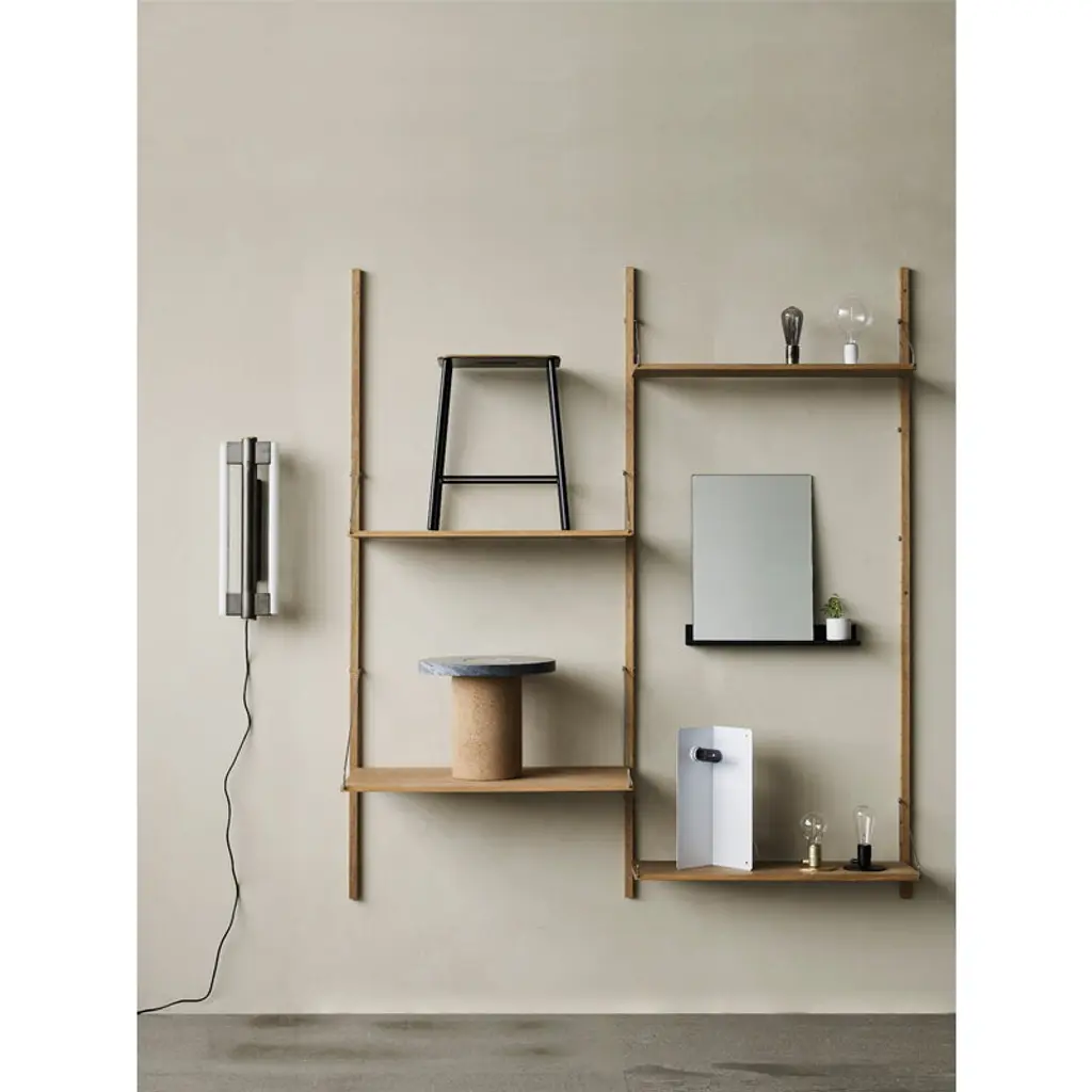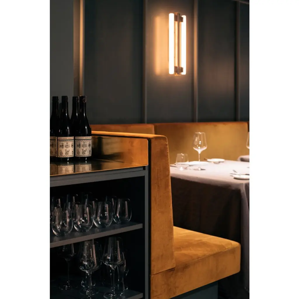 Frama’s Eiffel Double is a minimalist luminaire designed by Krøyer-Sætter-Lassen in 2019, consisting of a steel frame and tubular LED light sources placed on both sides. The opal glass of the bulbs filters the light softly and pleasantly, and it is also beautifully reflected from the lamp’s powder-coated steel body. The Eiffel wall lamp is also dimmable: its light output can be adjusted by turning the brass decoration at the bottom of the luminaire. Please note that the dimmable tube bulbs (Osram LED bulb 50 cm) are sold separately – you can add them to your cart in the accessories section below. You will need two bulbs for the Eiffel Double lamp.