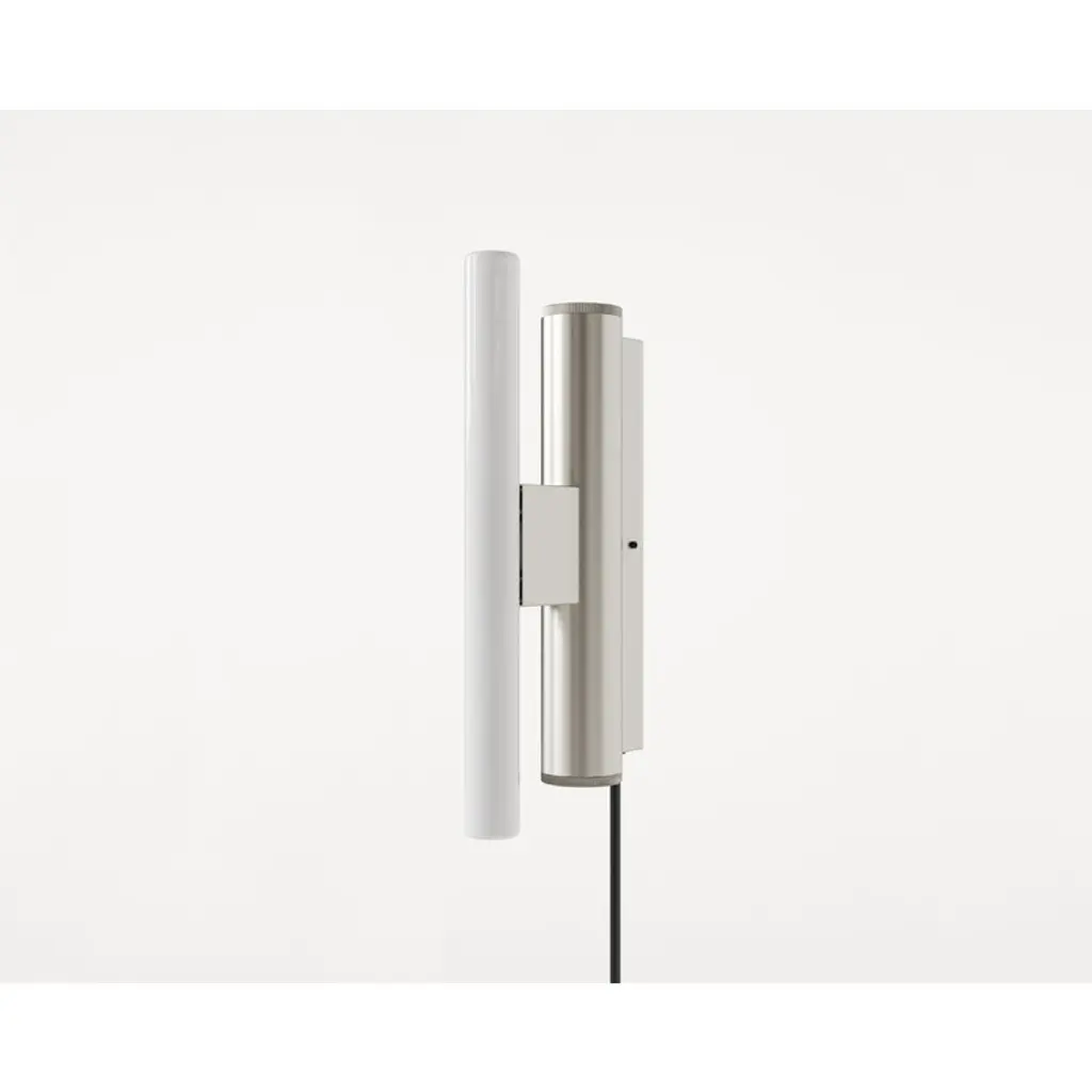 Frama's Eiffel Single is a minimalist luminaire designed by Krøyer-Sætter-Lassen in 2019, consisting of a steel frame and a tubular LED light source placed in front of it. The opal glass of the bulb filters the light softly and pleasantly, and it is also beautifully reflected from the lamp's stainless steel body. The Eiffel wall lamp is also dimmable: its light output can be adjusted by turning the round steel knob at the bottom of the luminaire. Please note that the dimmable tube bulb (Osram LED bulb 30 cm) is sold separately – you can add it to your cart in the accessories section below.