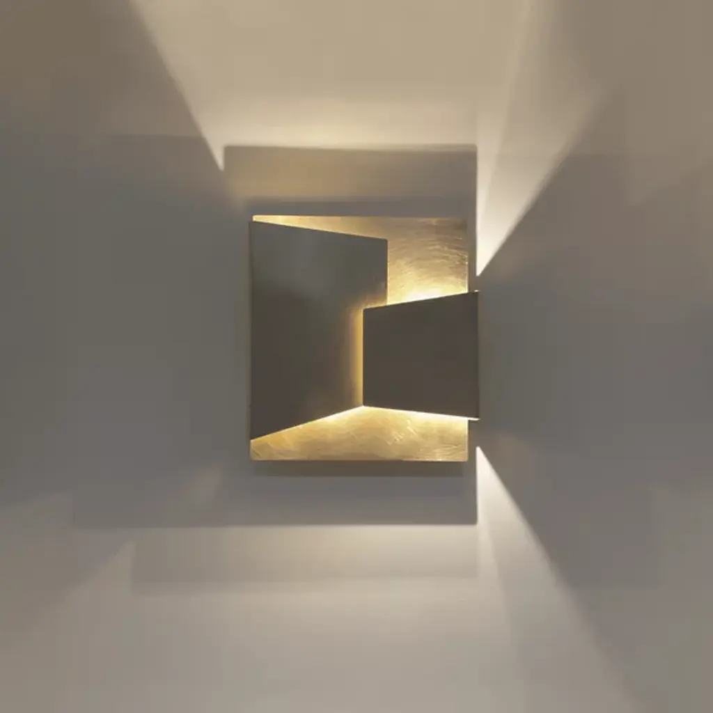 Ekay LED Wall Sconce from Ombre Portee adds a memorable angular character to walls. Thoughtfully designed by Eric de Dormaël in the intricate spirit of a pocket handkerchief, it seats a smooth square wall mount, placing potent lamping behind two geometric wings, one large and one small. The angular folds focus out a wide wall wash above and below the fixture, creating a vibrant warmth with an individual, brushed surface that naturally draws the eye.