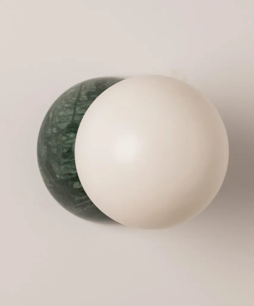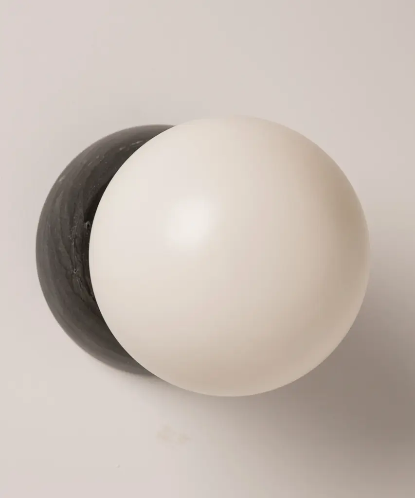 The Eklipso wall light is made of two parts spherical shapes lined up to create a moon eclipse feeling as you walk through the room. A modern shape created for modern living. Each Simone & Marcel lighting fixture is hand-made to order in the designers' studio located in rural Spain. Every product uses only materials and components sourced from local suppliers, all within a short drive of their workshop - an abandoned agricultural warehouse that the couple renovated themselves.