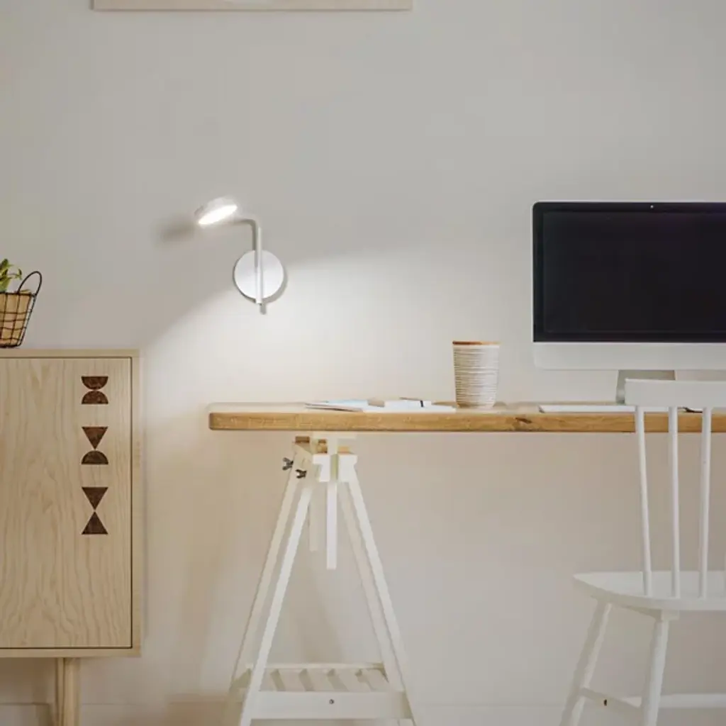 Like one’s own elbow, the Elbo LED Swing Arm Sconce from dweLED charms with an evocative silhouette and a series of adjustability options. It’s the ideal sconce for reading or tasks. The compact piece sports a USB port at the base for convenient charging. Its L-shaped arm swings from side to side while the circular lamp head above rotates. This lamp head packs an LED array that turns on to distribute a soft yet focused stream of illumination.