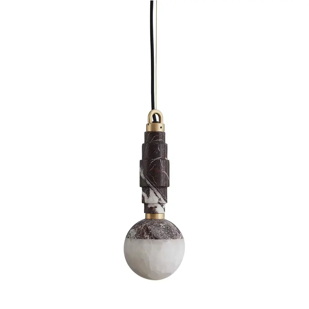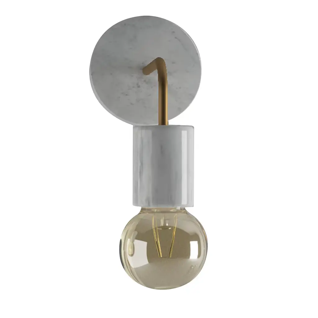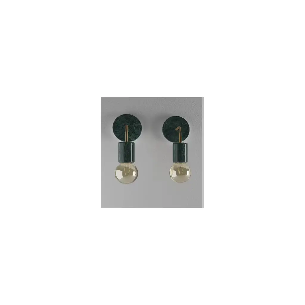 From the living room to the bathroom thanks to its versatile look not compromising on class, this sconce is a thoughtful balance between pure geometric volumes and prized green Guatemala marble. Both the round wall mount and the cylindrical shade are fashioned of matte-finished marble, joined together by means of a thin, curved satin brass wire. Offered in multiple marble variants upon request, the design fits E27 bulbs.
