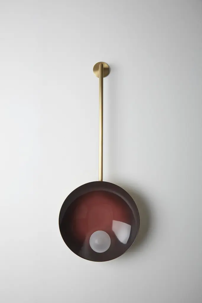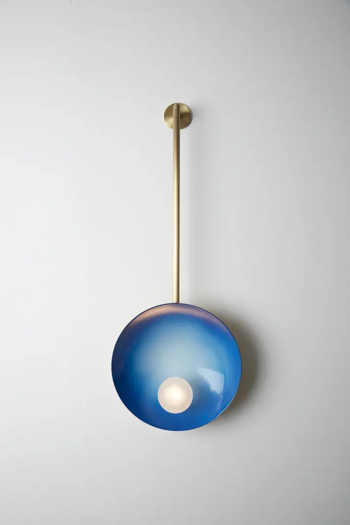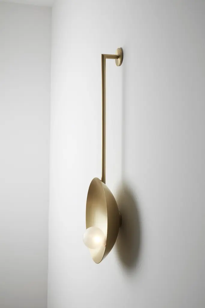 Elegant Handcrafted Brushed Brass Oyster Wall Mounted Lamp With Rod by Carla BazDimensions: Ø.30 x H.78 x D.9 CMWeight: 2 kgMaterial: Brass, Blown glass globe.Available in Brushed Brass, Brushed Bronze, Brushed Copper, Brushed Stainless Steel, Verdigris finishes.Available in other color/ finish upon request.Oyster is a series of sculptural lighting pieces that were developed in 2016. Wanting to explore the idea of customization and adapting designs to different functionalities and scales, we developed this new series available in 3 different sizes and a selection of bold colors offering choices that are eccentric and personal.All our lamps can be wired according to each country. If sold to the USA it will be wired for the USA for instance.Carla Baz is a French-Lebanese designer dedicated to foster synergies between her innovative approach to furniture/lighting and the very accomplished skills of Lebanese artisans. After studying interior architecture at ESAG Penninghen in Paris, she pursued a Masters in product design for the luxury industry at the University of Art and Design Lausanne (ECAL) where she had the opportunity to work on several projects under the supervision of international designers such as Ronan Bouroullec, Barber Osger by, Marti Guixé, Pierre Charpin and Umberto and Fernando Campana. She then engaged in diverse professional experiences, working in London for Burberry, Vivienne Westwood and Zaha Hadid until she felt it was time to explore her own lines. Thus began a very inspiring sequence of experiments which resulted in small editions of her sculptural and functional furniture and earned her the Brussels based Boghossian Fondation’s 2013 Design Prize.All her projects are rooted in that elaborate relationship where innovative ideas meet noble materials that are worked by hand. Within that journey to their process, unique and elegant products are born that hold their place in our landscape. Carla has recently been awarded the 'Rising Talent' award at Maison & Objet’s 2018 September edition.