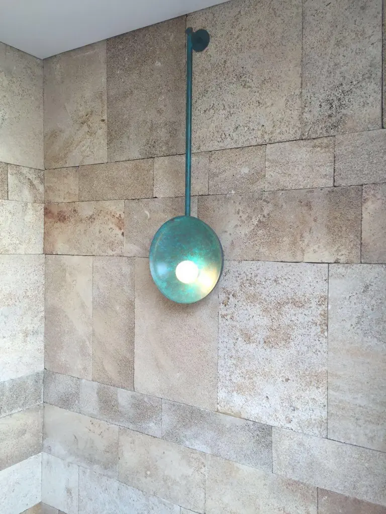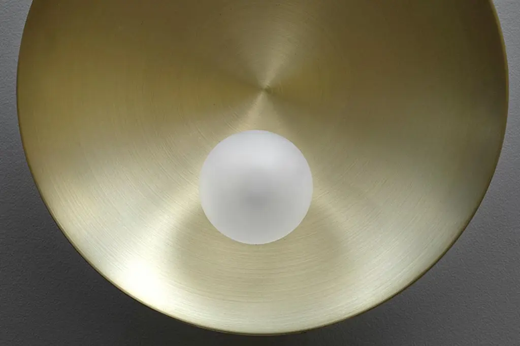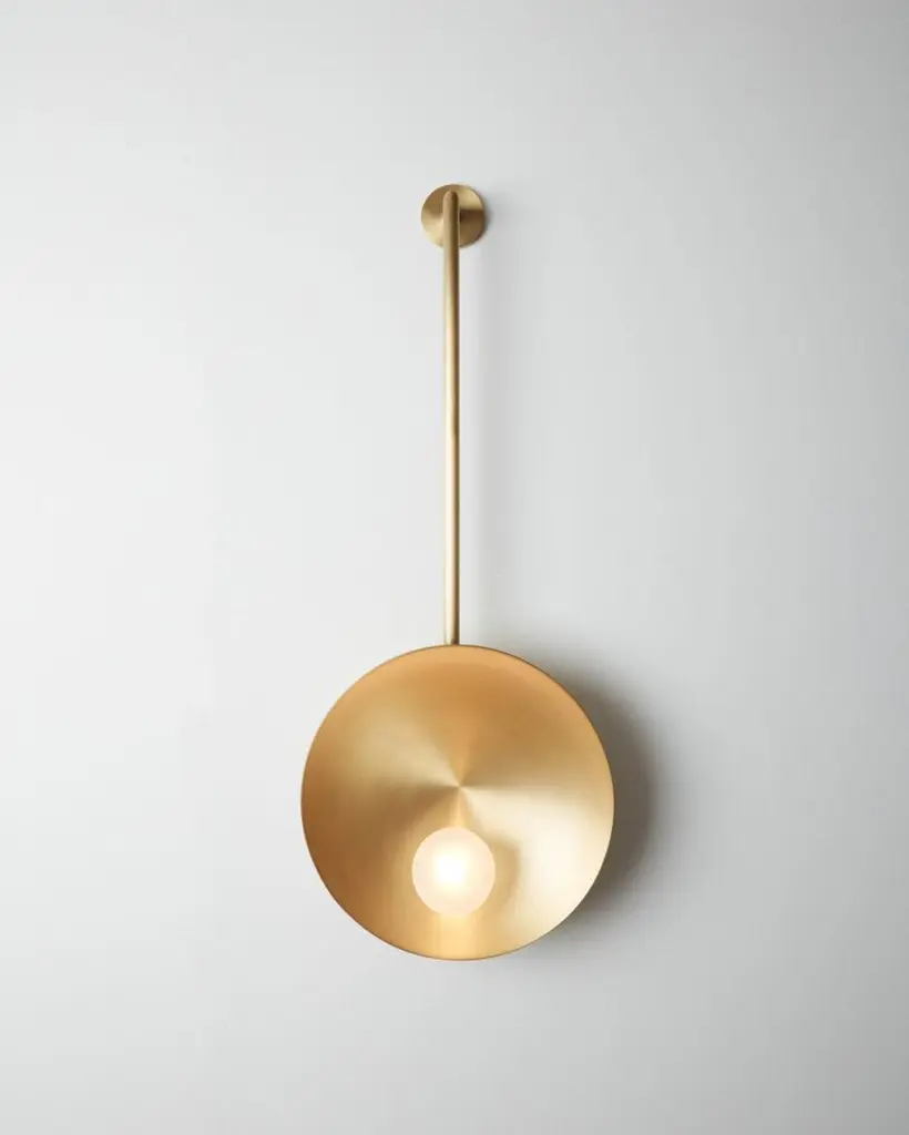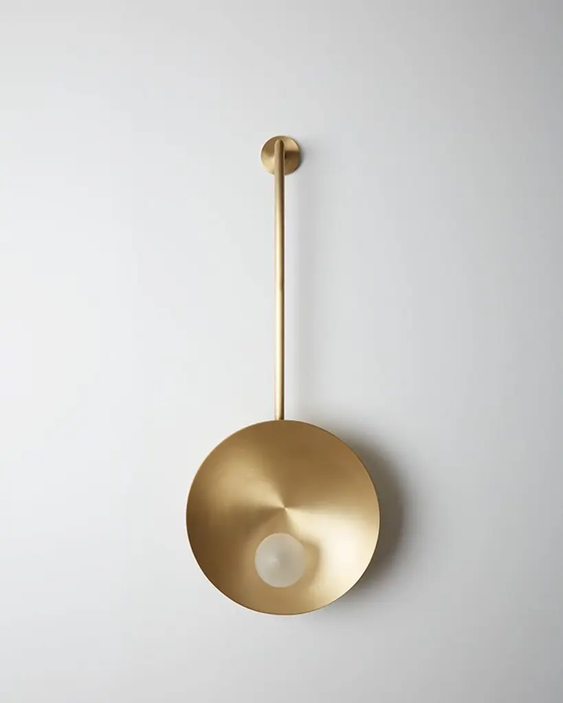 Elegant Handcrafted Brushed Brass Oyster Wall Mounted Lamp With Rod by Carla BazDimensions: Ø.30 x H.78 x D.9 CMMaterials: Brushed brass Weight: 2 kg.Available in Brushed Brass, Brushed Bronze, Brushed Copper, Brushed Stainless Steel, Verdigris finishes.Available in other color/ finish upon request.Oyster is a series of sculptural lighting pieces where the delicately nested pearl in its protective shell embodies itself a poetic and meaningful metaphor. Working around the contrast between the two components, the fragile blown-glass bulb and the compact brass, the series experiments textures, patinas and reflection, aiming to juxtapose and shelter the most delicate within the rough.Carla Baz is a French-Lebanese designer dedicated to foster synergies between her innovative approach to furniture/lighting and the very accomplished skills of Lebanese artisans. After studying interior architecture at ESAG Penninghen in Paris, she pursued a Masters in product design for the luxury industry at the University of Art and Design Lausanne (ECAL) where she had the opportunity to work on several projects under the supervision of international designers such as Ronan Bouroullec, BarberOsgerby, Marti Guixé, Pierre Charpin and Umberto and Fernando Campana. She then engaged in diverse professional experiences, working in London for Burberry, Vivienne Westwood and Zaha Hadid until she felt it was time to explore her own lines. Thus began a very inspiring sequence of experiments which resulted in small editions of her sculptural and functional furniture and earned her the Brussels based Boghossian Fondation’s 2013 Design Prize. All her projects are rooted in that elaborate relationship where innovative ideas meet noble materials that are worked by hand. Within that journey to their process, unique and elegant products are born that hold their place in our landscape. Carla has recently been awarded the 'Rising Talent' award at Maison & Objet’s 2018 September edition.