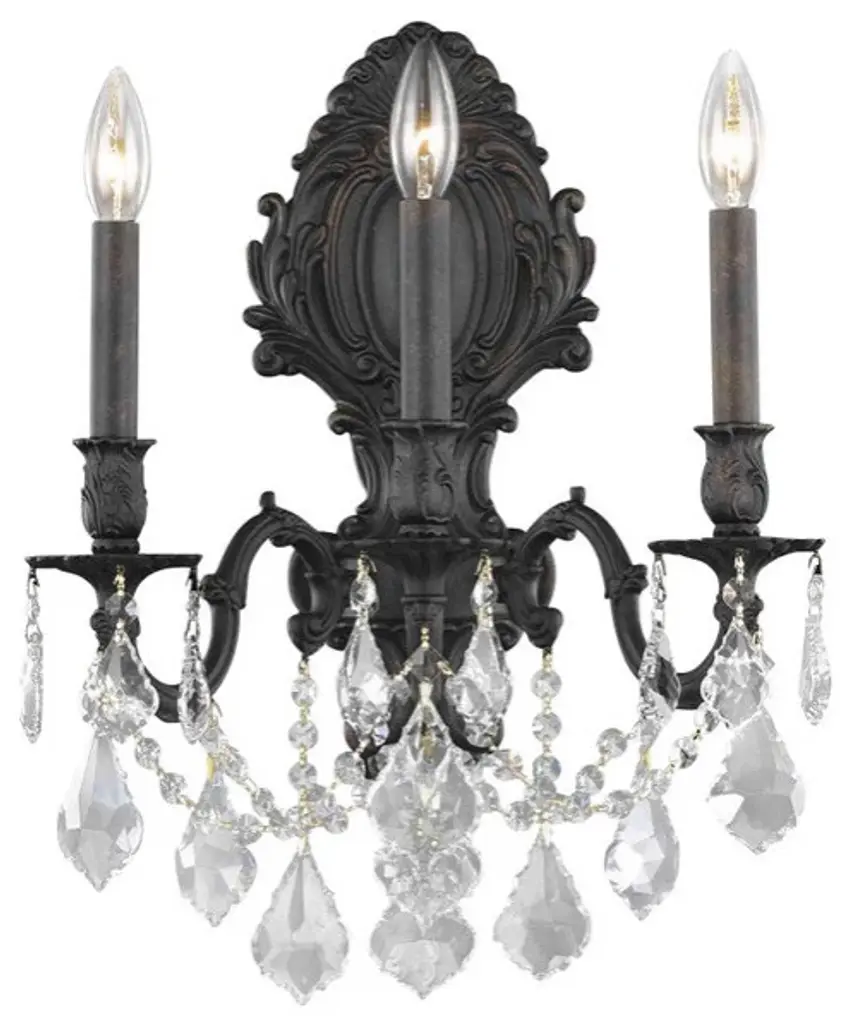 Elegant Monarch Wall Sconce, Dark Bronze Finish With Royal Cut Crystal