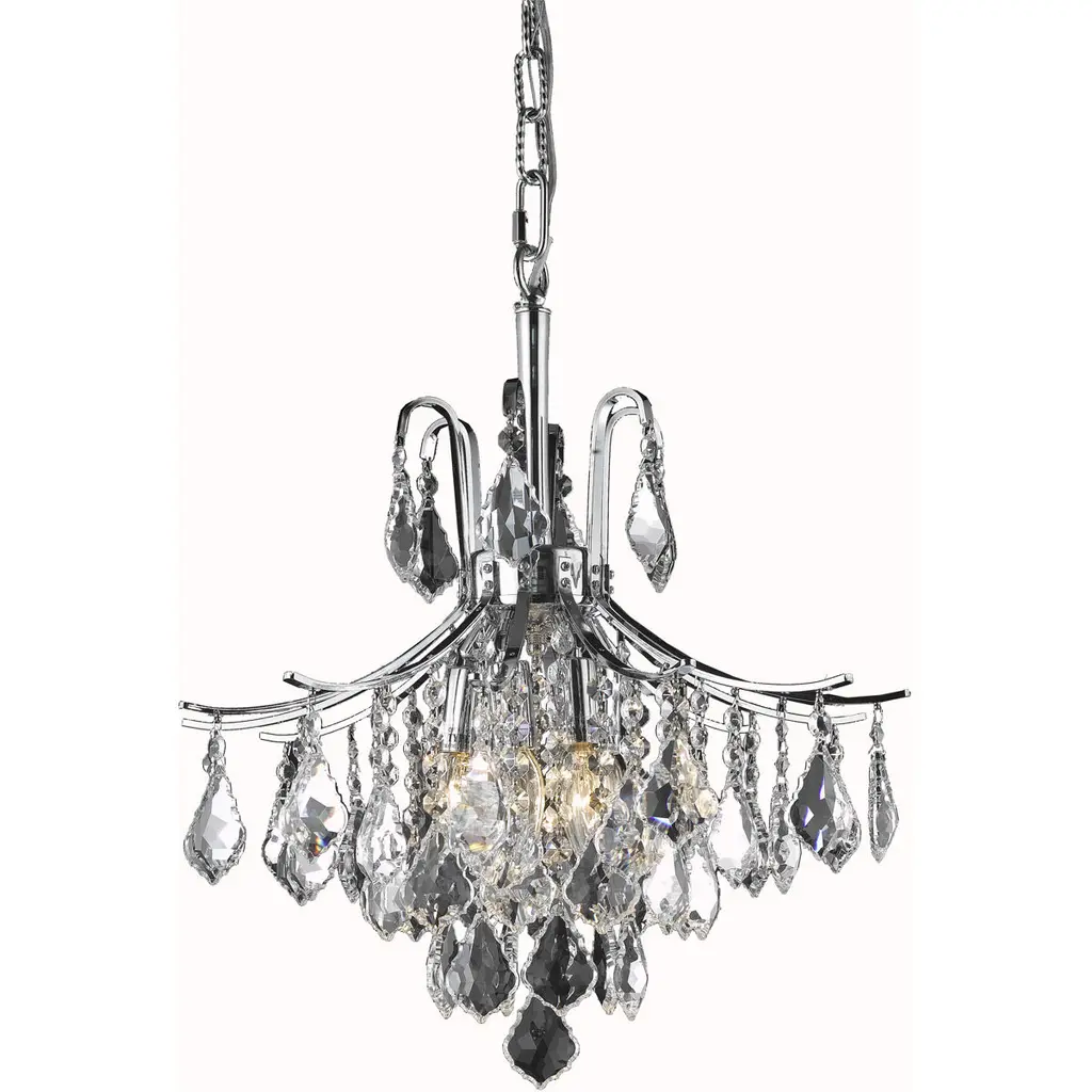 The Victoria Collection provides a display of brilliant color. This vibrant series features multi-layers of crystals throughout its body adding decorative design to a room. Illumination- Bulb Type: E12- Number of bulbs (not included): 3- Max Wattage: 180Style- Finish: Chrome- Collection: Victoria- Chain/Wire Included: 10"- Crystal Color: Clear- Crystal Trim: Royal CutAdditional Info- UL & Ulc rated- Voltage: 110V-125VCrystal Trim Details: Royal Cut Crystal: a combination of high quality lead free machine cut and machine polished crystals & full-lead machine-cut crystals to meet a desirable showmanship of an authentic crystal chandelier. Elegant Cut Crystal: Elegant Cut Crystal consist 30% of high quality full-lead machine-cut crystal that is above industry standards. It possesses sharp faceting polished to a visual radiance. It is more faceted than Royal Cut. Spectra Crystal: reliable crystal quality by SWAROVSKI Swarovski Elements Crystal: Formerly branded as Swarovski Strass. An exercise in technical perfection, Swarovski ELEMENTS crystal meets all standards of perfection. It is original, flawless and brilliant, possessing lead oxide in excess of 33%. Made in Austria, each facet is perfectly cut and polished by machine to maintain optical purity and consistency. An invisible coating is applied at the end of the process to make the crystal easier to clean.