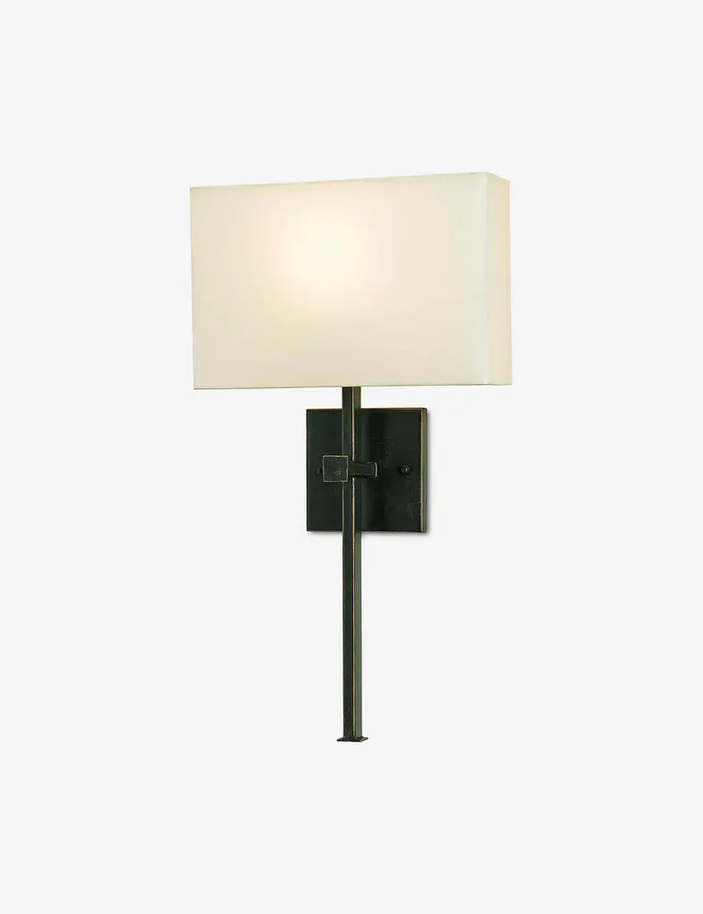 Elegant Wall Sconce With Distressed Black Shade And Decorative Scroll Design, Vintage Home Lighting Fixture, 1Pc