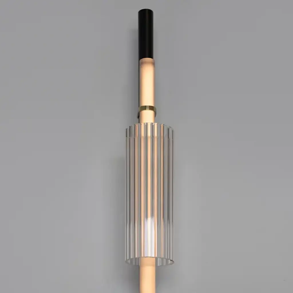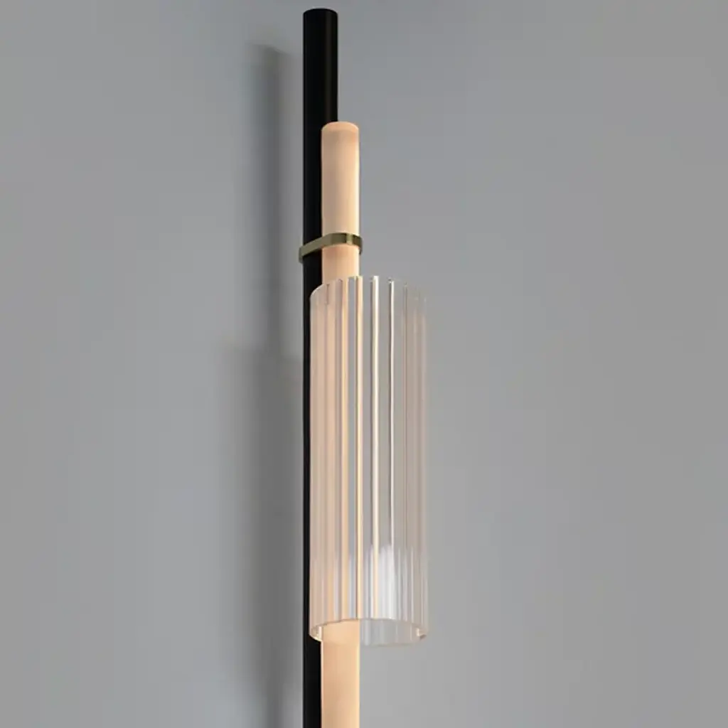 The Ember LED S5 Wall Sconce from Ridgely Studio Works features a distinctive design with a radiant scalloped glass tube diffuser and two delicate rings that securely hold it in place, emitting a warm and inviting glow. Its unique construction adds a touch of elegance to any space, providing both style and functionality. Illuminate your home with this captivating wall sconce, designed to create a cozy ambiance and enhance your decor.