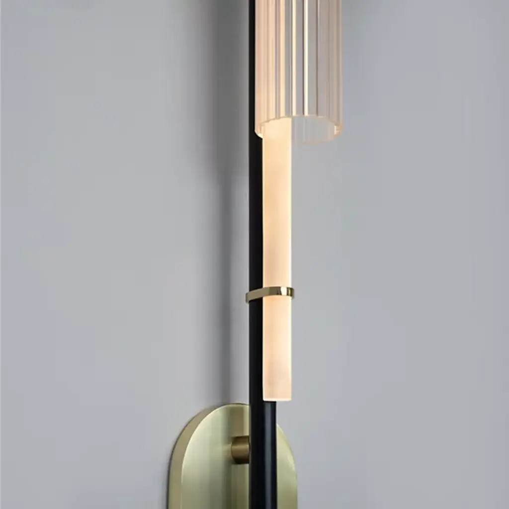 The Ember LED S5 Wall Sconce from Ridgely Studio Works features a distinctive design with a radiant scalloped glass tube diffuser and two delicate rings that securely hold it in place, emitting a warm and inviting glow. Its unique construction adds a touch of elegance to any space, providing both style and functionality. Illuminate your home with this captivating wall sconce, designed to create a cozy ambiance and enhance your decor.