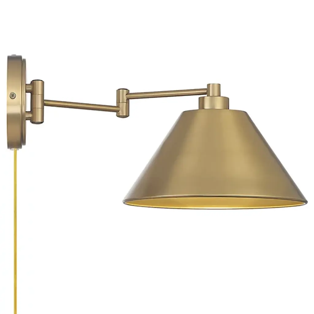 The Eli Wall Sconce from Alder & Ore brings a transitional aesthetic to your décor. It is composed of durable metal that forms a conically shaped shade to house a brilliant LED. This wall sconce is secured to your wall by an arm stemming from a circular backplate. The fixture can be hardwired or plugged into a wall outlet for your convenience. An adjustable arm lets you change the sconce’s position to suit your needs.
