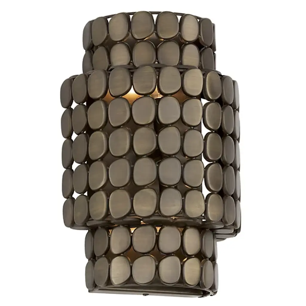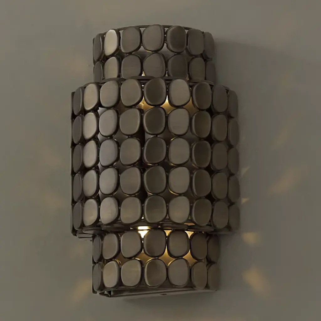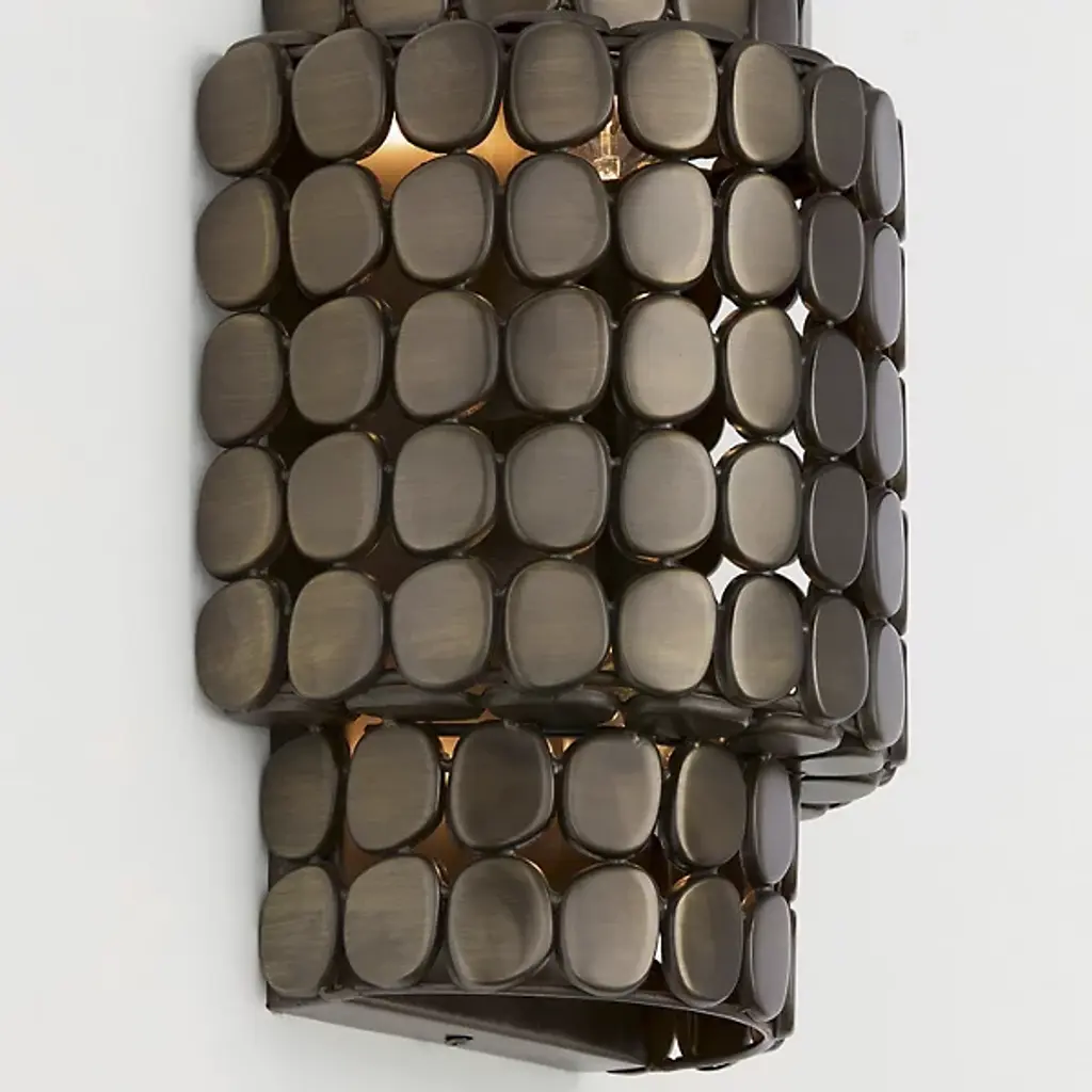 The Eliana Wall Sconce from Capital Lighting offers adaptable illumination through its variable socket positioning. Metal medallions arranged in a cylindrical pattern create a semi-permeable boundary that light penetrates in carefully controlled ways. The handcrafted construction ensures each sconce carries subtle distinctions that reflect its artisan origins. Light filters through precise gaps, projecting intricate patterns onto surrounding surfaces. This sconce’s cylindrical form provides directional light while maintaining the decorative integrity of the medallion pattern. Each disc is positioned to manage light dispersion while contributing to the overall design language.