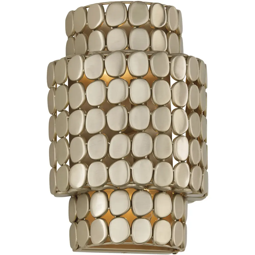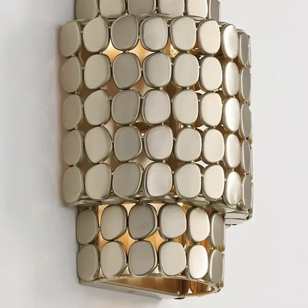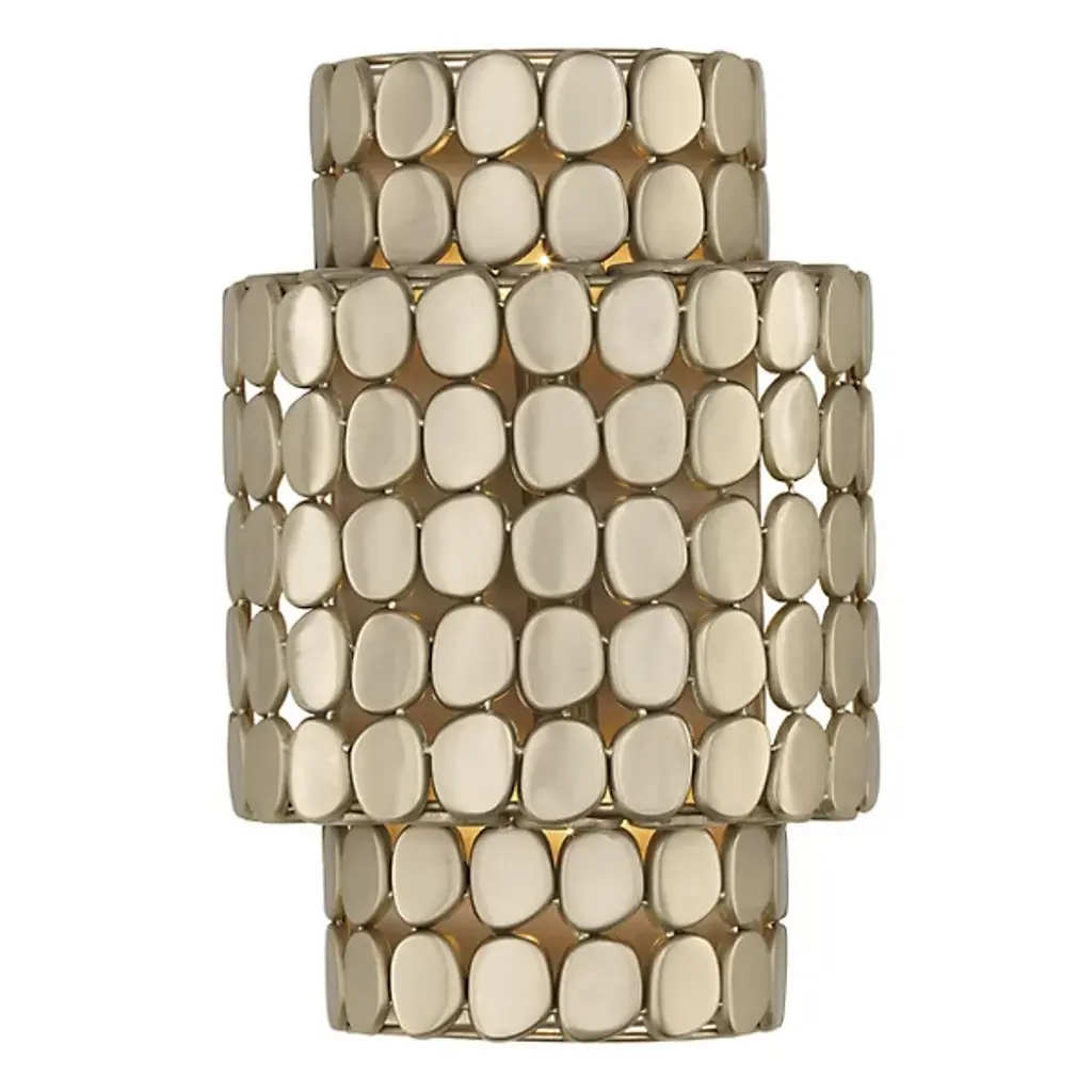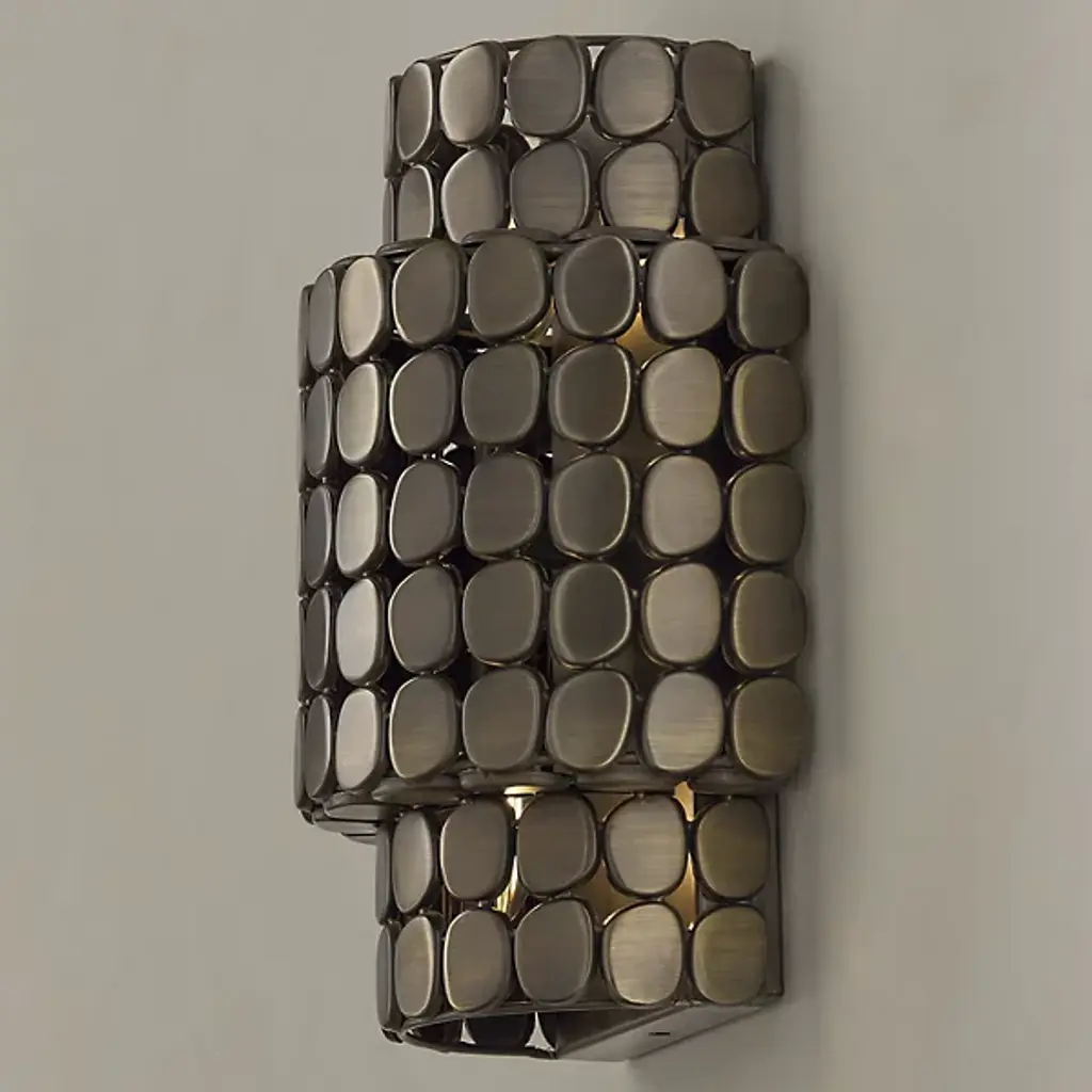 The Eliana Wall Sconce from Capital Lighting offers adaptable illumination through its variable socket positioning. Metal medallions arranged in a cylindrical pattern create a semi-permeable boundary that light penetrates in carefully controlled ways. The handcrafted construction ensures each sconce carries subtle distinctions that reflect its artisan origins. Light filters through precise gaps, projecting intricate patterns onto surrounding surfaces. This sconce’s cylindrical form provides directional light while maintaining the decorative integrity of the medallion pattern. Each disc is positioned to manage light dispersion while contributing to the overall design language.