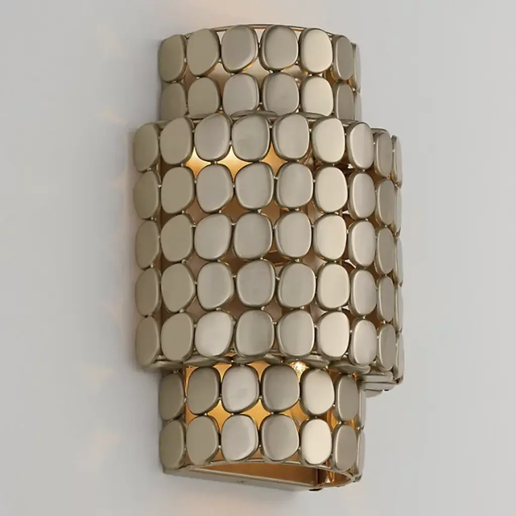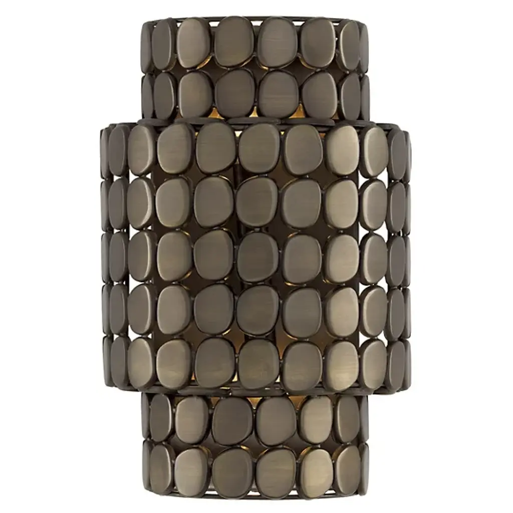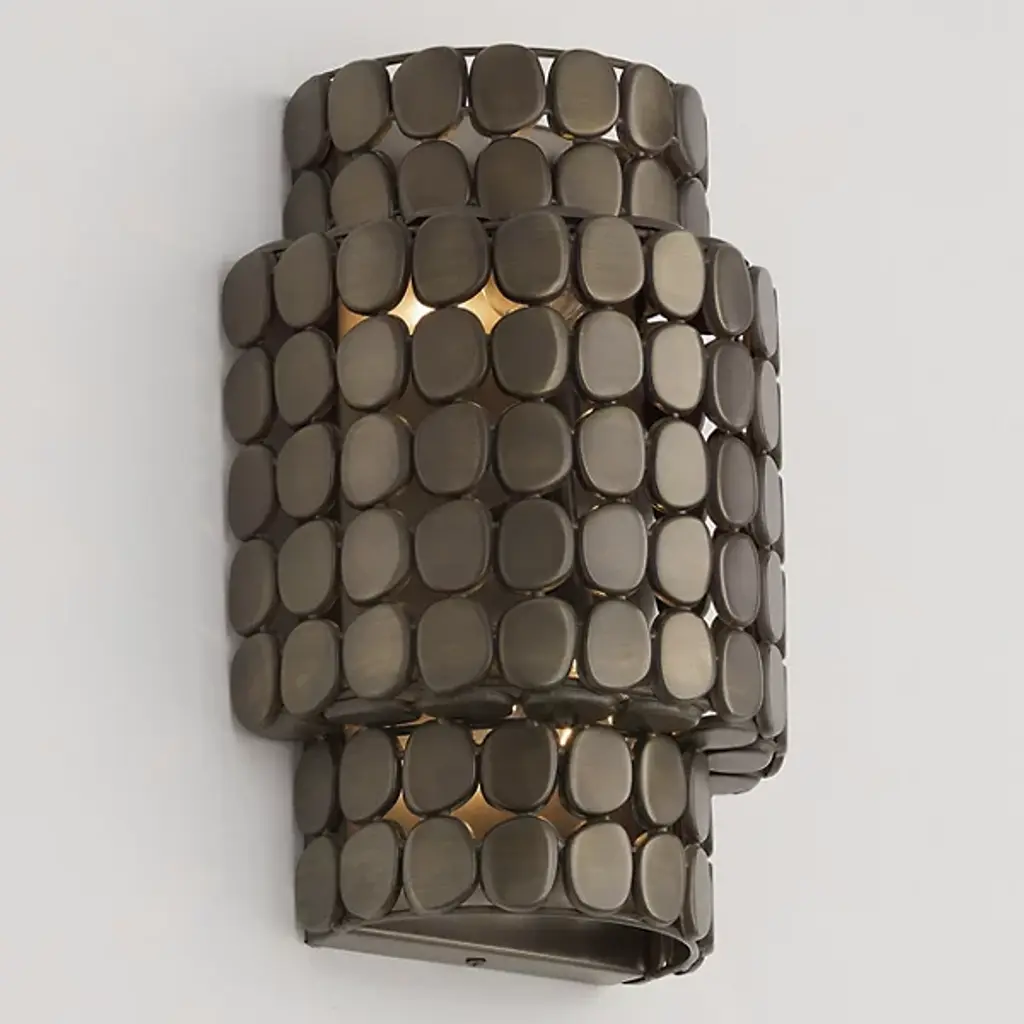 The Eliana Wall Sconce from Capital Lighting offers adaptable illumination through its variable socket positioning. Metal medallions arranged in a cylindrical pattern create a semi-permeable boundary that light penetrates in carefully controlled ways. The handcrafted construction ensures each sconce carries subtle distinctions that reflect its artisan origins. Light filters through precise gaps, projecting intricate patterns onto surrounding surfaces. This sconce’s cylindrical form provides directional light while maintaining the decorative integrity of the medallion pattern. Each disc is positioned to manage light dispersion while contributing to the overall design language.