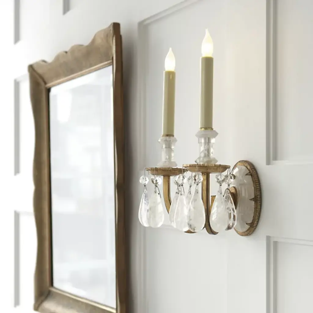 The Elizabeth Wall Sconce by Visual Comfort Signature, formerly known as Visual Comfort, bridges the gap between traditional and modern to deliver a stunning accent light for your home. Designed with candelabra sockets, curved arms and quartz accents in a teardrop shape, this sconce shimmers with elegance and grace. Mount it next to artwork or in any other space in need of soft illumination and a luxurious appearance.