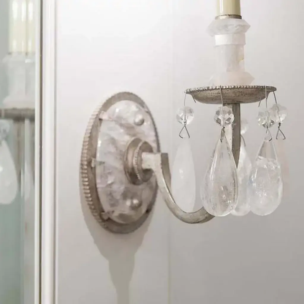 The Elizabeth Wall Sconce by Visual Comfort Signature, formerly known as Visual Comfort, bridges the gap between traditional and modern to deliver a stunning accent light for your home. Designed with candelabra sockets, curved arms and quartz accents in a teardrop shape, this sconce shimmers with elegance and grace. Mount it next to artwork or in any other space in need of soft illumination and a luxurious appearance.