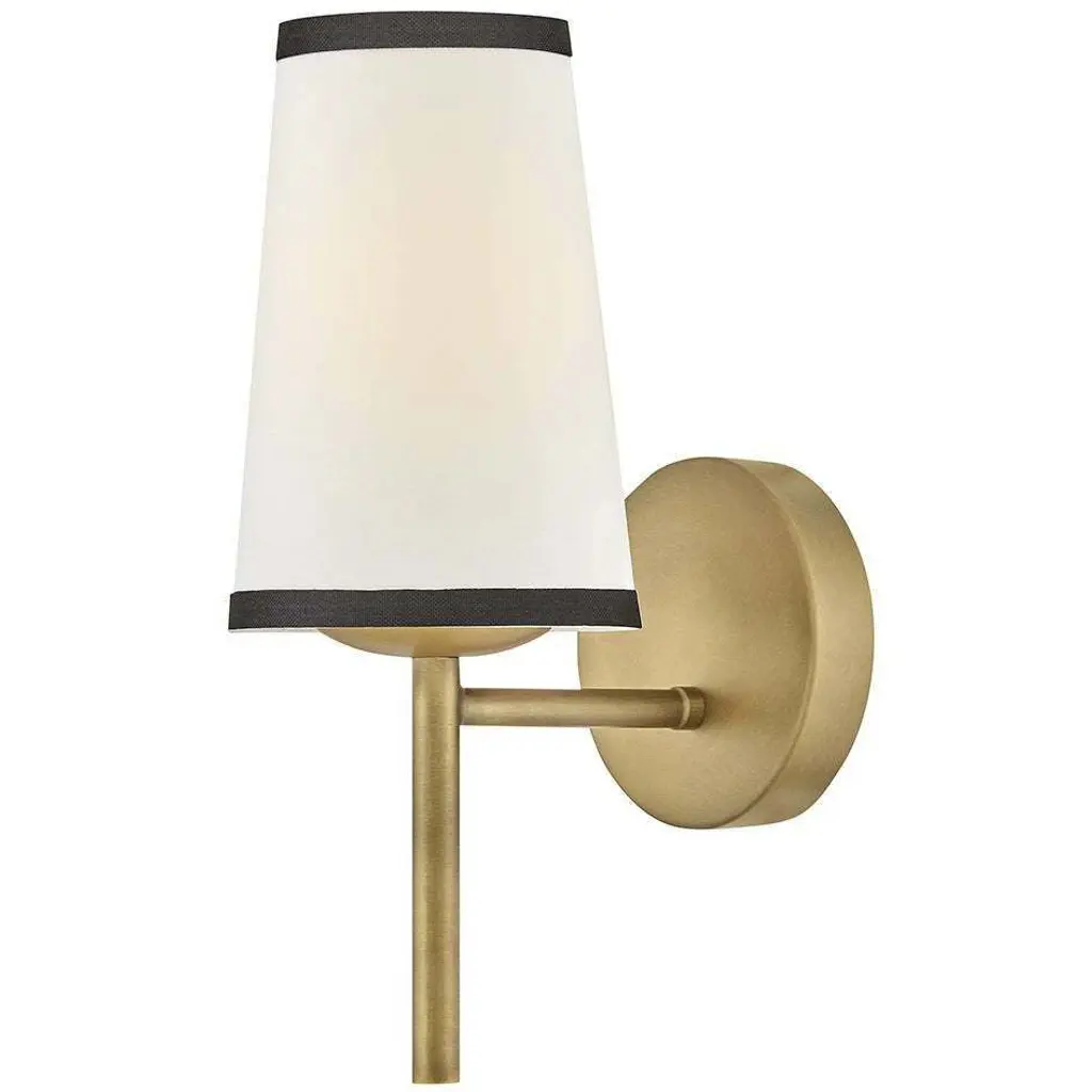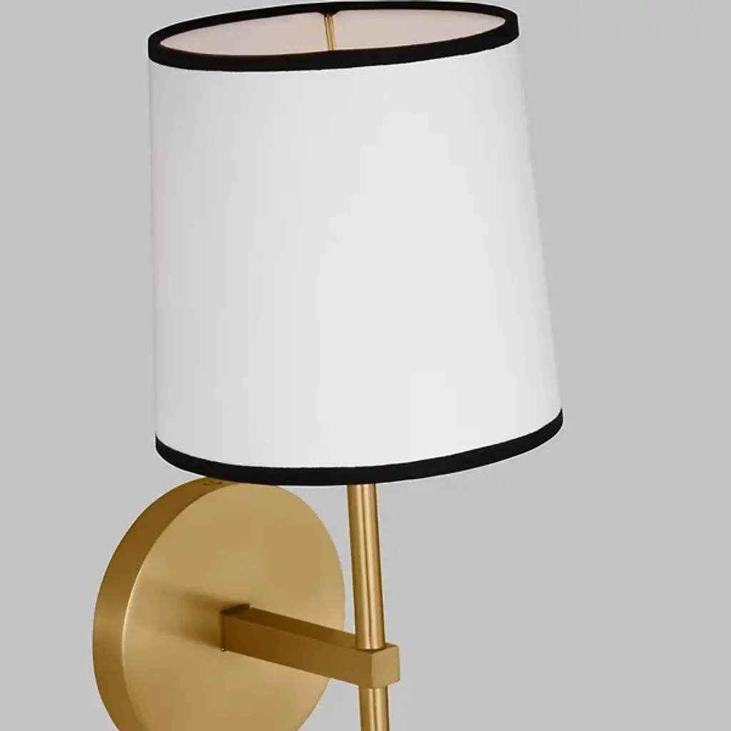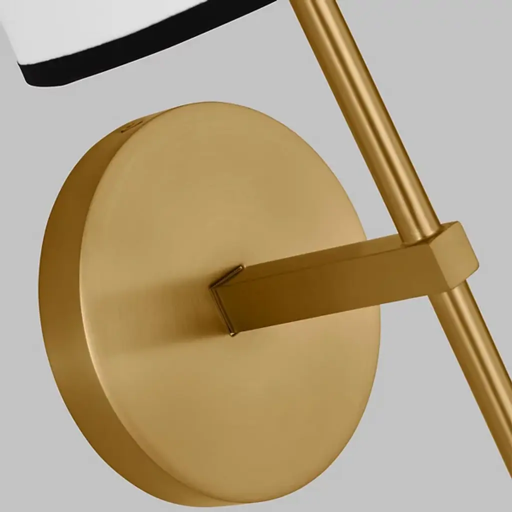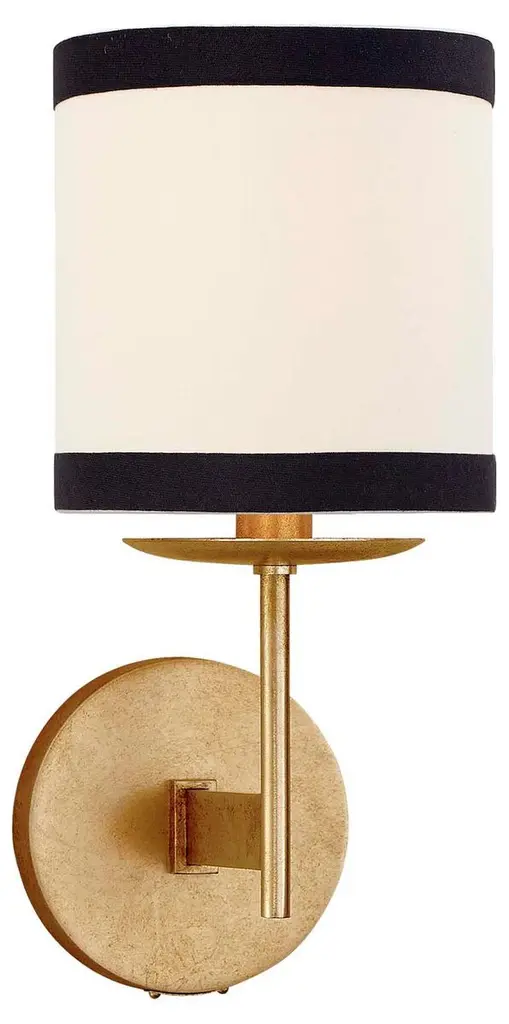 The Ellison Wall Sconce from Visual Comfort Studio matches the thoughtful placement of the home’s furnishings and décor with a balanced composition of shape and color. The sconce references mid-century design through its gorgeous geometry. The puck-like backplate is compact enough to fit in a tight column, nook, or entryway. Its slender stem moves the eye towards the beautifully contrasting linen shade. The bright lamping tapers its light through the shade, resulting in a cozy ambiance.