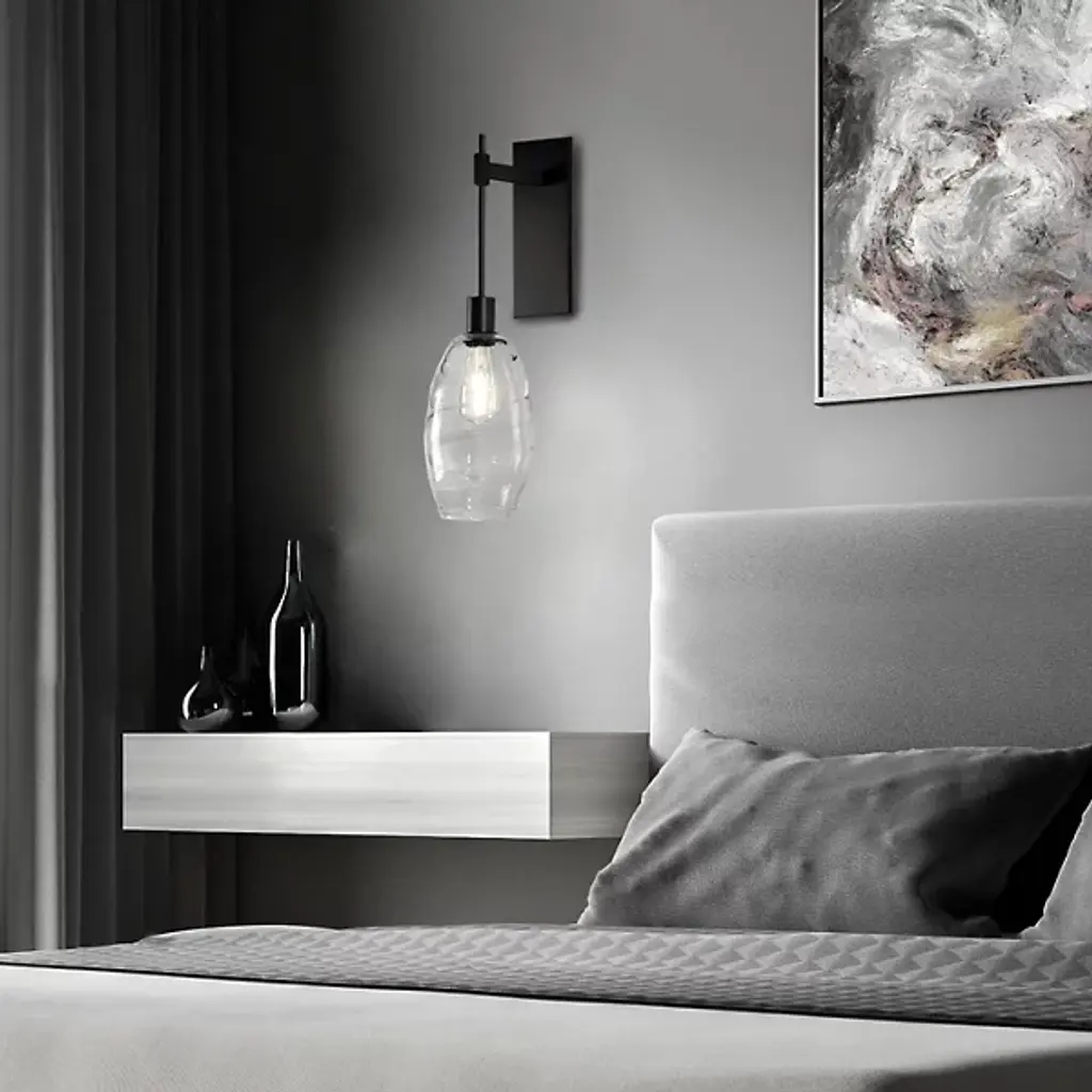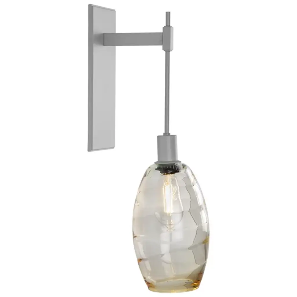 A swirling dance of uplifting light. Bring a taste of true artisanship to your home with the blown glass Ellisse Tempo Wall Sconce from Hammerton Studio. Its glass shade exudes a magical aura that draws you in for a closer inspection. The first thing you notice is flowing, rhythmic lines accenting its rounded form. These gestural contours come to life when a molten glass ribbon is hand-wrapped over a blown glass bubble. To complement the rich features of the glass, artisans pair it with sleek metal hardware defined by pure geometry. The square backplate makes the piece a great fit in tight nooks and architectural features. With a single bulb inside, this piece sends out a warm ambient glow that projects on the wall behind it as a painterly design.