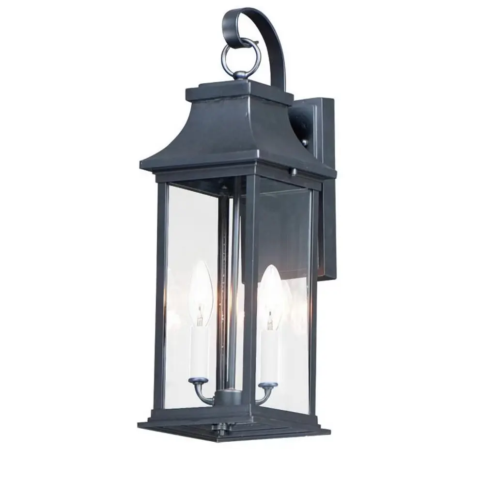 Clean lines and smooth materials make up the Ellsworth Outdoor Wall Sconce by Capital Lighting. This contemporary fixture offers an updated and modern take on the classic lantern-style wall sconce, with a square metal backplate and upside-down U-shaped arm supporting the narrow shade. Crisp, angular lines form the tapered hood that sits atop a clear glass enclosure for the classic-style candelabra inside. A geometric finial accents its end, rounding out the aesthetic.