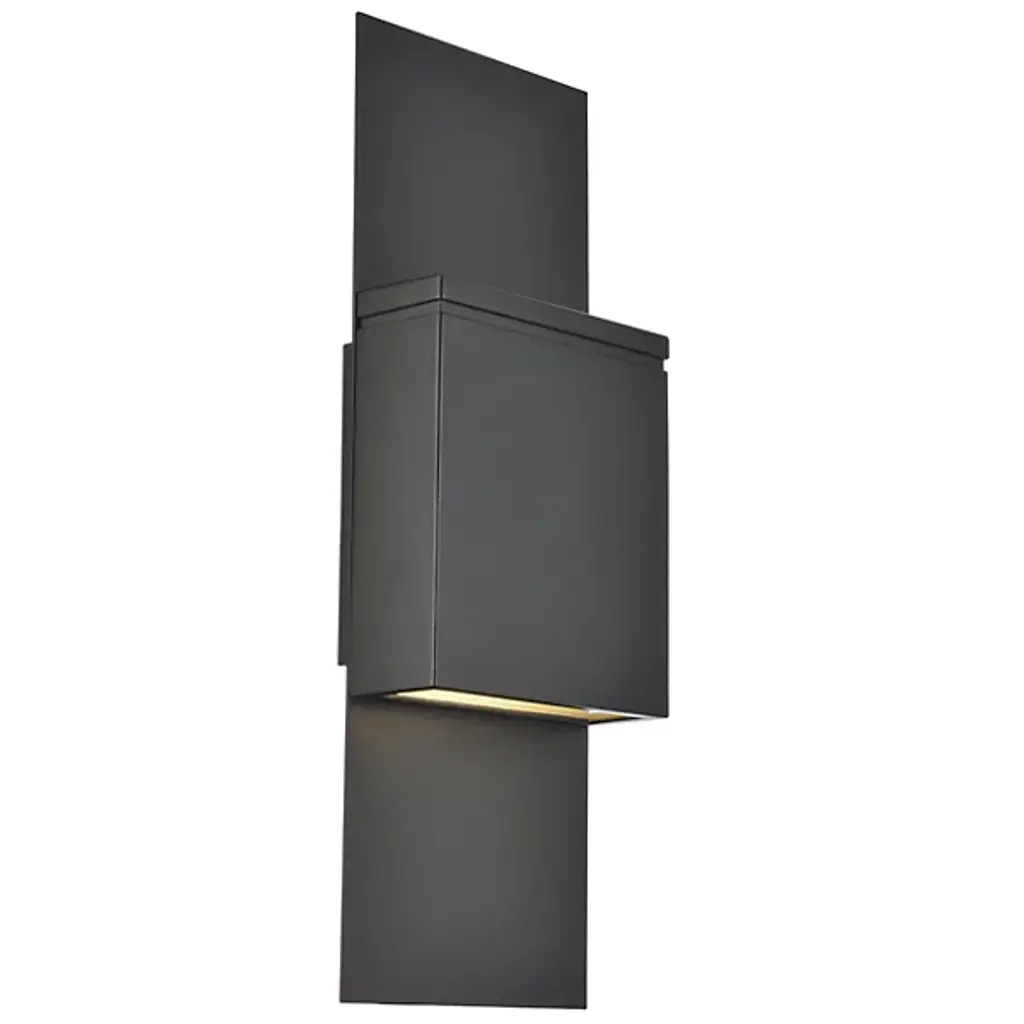 The Elma Outdoor LED Wall Sconce from Huxe is a smooth contemporary with architectural precision. A sculpted aluminum box with stepped surfaces, each fixture is hand-finished to emphasize the quality of its materials and show fine detail. A concealed, high-output LED source delivers luminous up and downlight through glass diffusers, balancing function with a refined presence. Dark Sky compliant and wet listed, it offers even illumination that sweeps across the walls and entryways of varied outdoor settings.