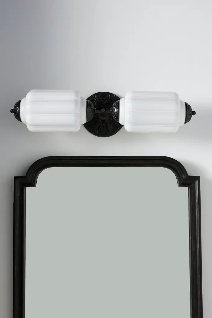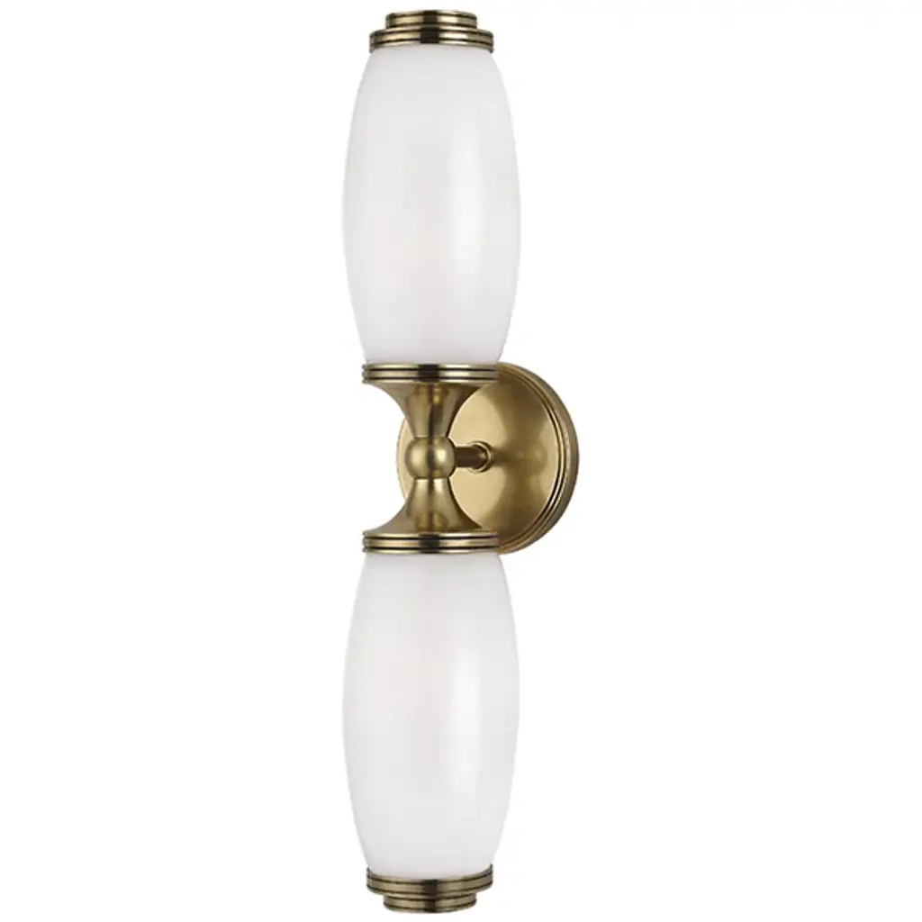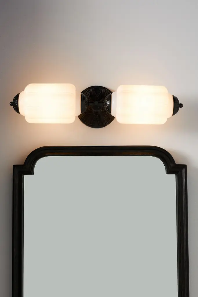 With milk glass shades and an oiled brass frame, this vintage-inspired vanity sconce brings feminine charm to any space.This item is UL listed, meaning it has been tested and approved to meet the government-regulated safety standards for the USA. Use with electrical outlets 110-120v or lower, as anything higher can cause fire or injury. If you're purchasing this item for use outside of the United States, employ the adapter and voltage converter suited for your country.