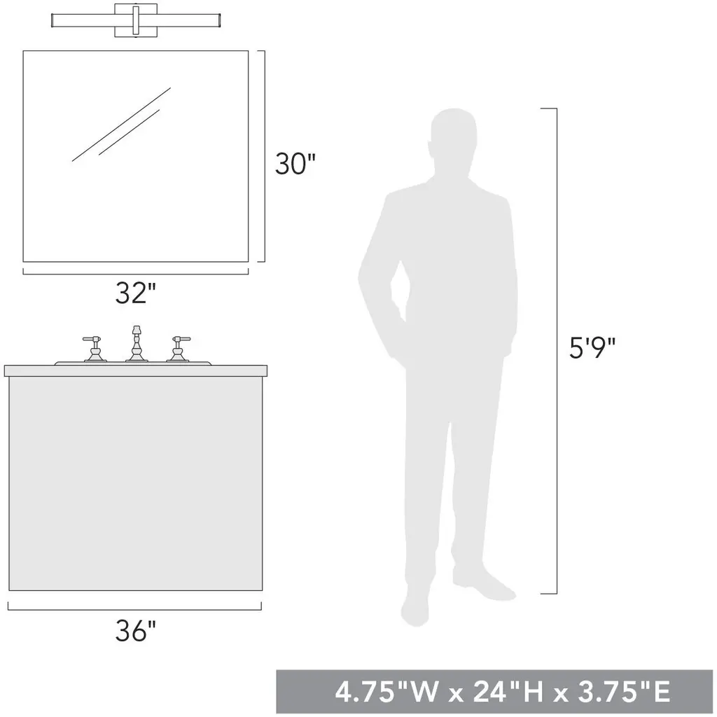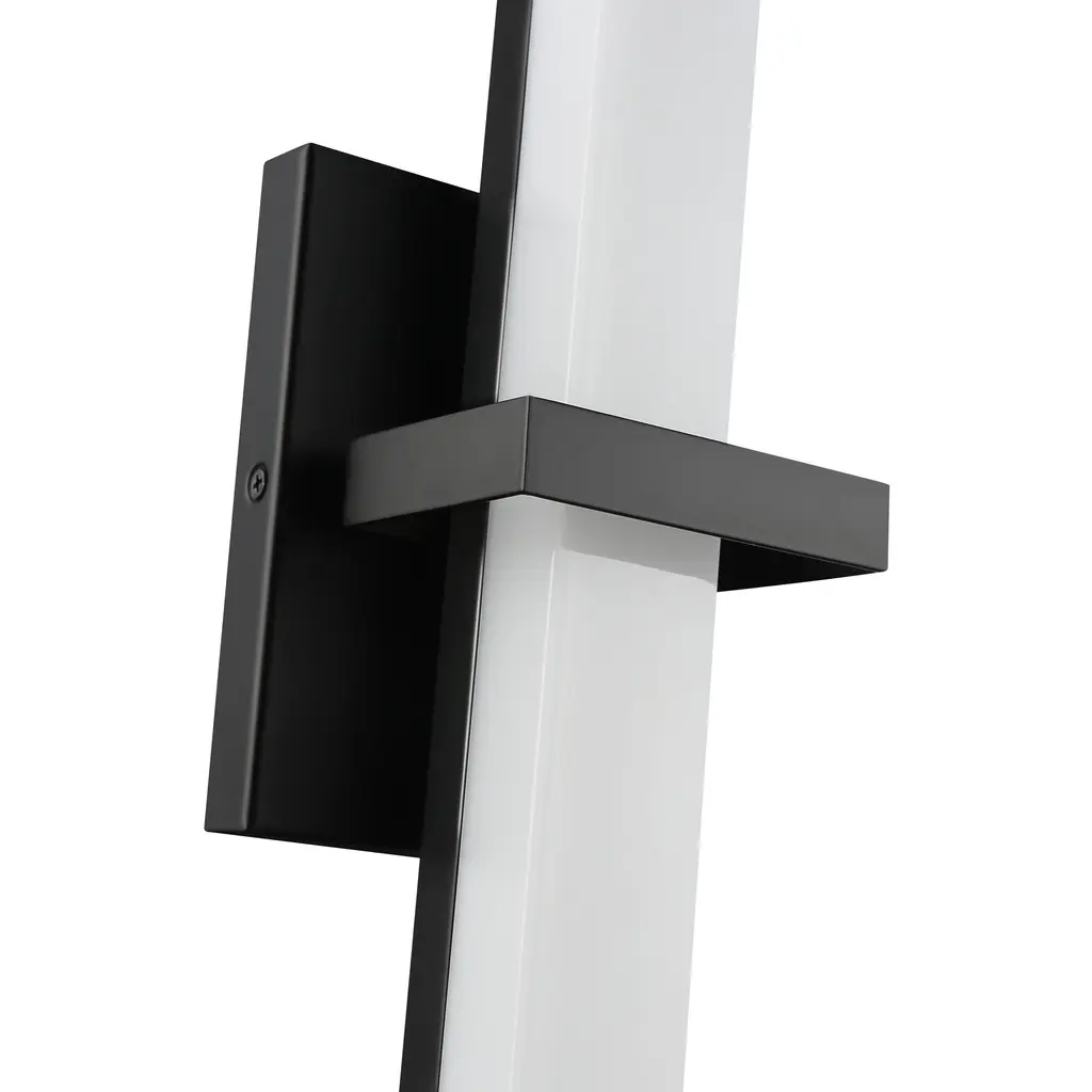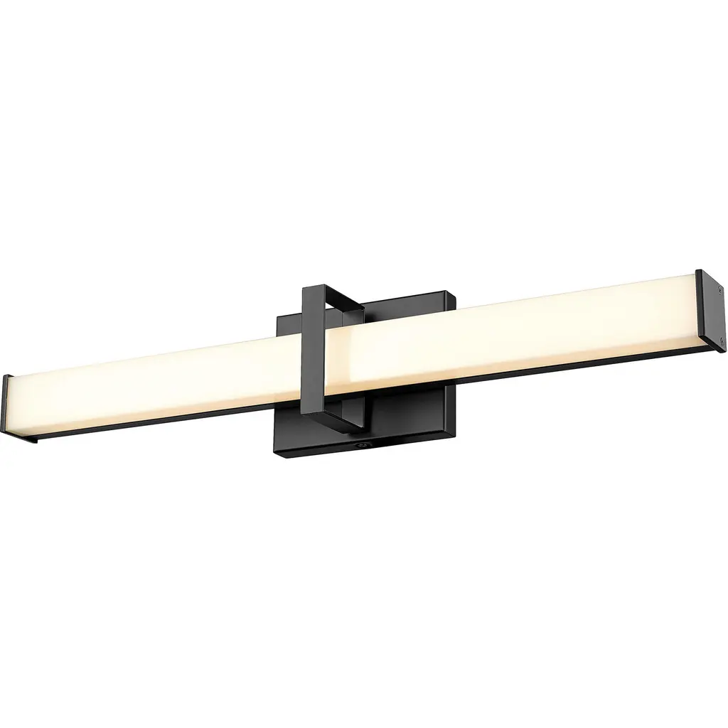 Bring clean, modern style into your home with the Golden Lighting Elon Integrated LED 24in Vanity. Featuring an Acrylic shade and a Matte Black frame, it creates a welcoming atmosphere. The opal glass shade diffuses light evenly, providing a soft, glare-free glow that enhances any space, while its texture adds an ethereal quality. The Matte Black finish exudes sophistication, making it a versatile addition to various decor styles. Damped location rated and ideal for bathrooms or covered spaces, this fixture enhances safety and style. Installation is straightforward, making it suitable for various settings. With overall dimensions of 24"W x 4.75"H x 3.75"D, this integrated LED vanity boasts 2250 rated lumens with a warm glow. Close with lifestyle appeal and quality, making your bathroom feel brighter and more inviting.