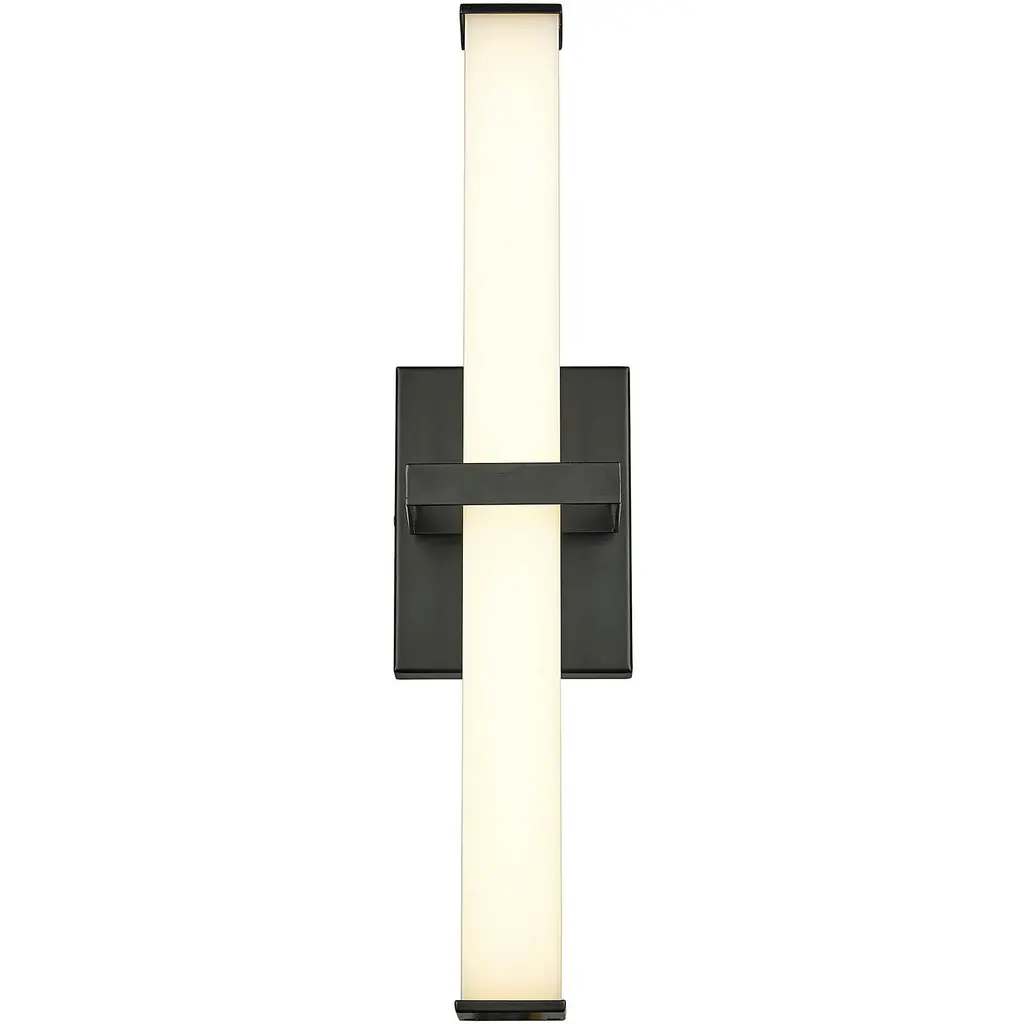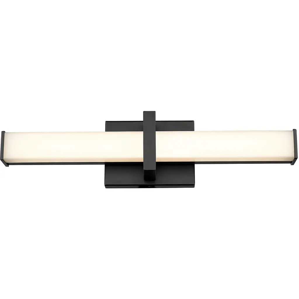 Bring modern elegance into your home with the Golden Lighting Elon Integrated LED 19in Vanity in Matte Black. Featuring an acrylic shade and a matte black frame, it creates a welcoming atmosphere.This acrylic shade is beautifully designed to diffuse light evenly for a soft, glare-free glow, making it perfect for a contemporary bathroom. The timeless satin-matte finish provides smooth texture and absorbs light, enhancing the sophistication of your space.Damp Location Rated, it is suitable for covered and semi-enclosed spaces like bathrooms and laundry rooms. Enjoy the flexibility of installation without concerns, and an energy-efficient illumination solution with integrated LED technology that offers 1750 lumen output.Overall Dimensions: 19"W x 4.75"H x 3.75"D. Illuminate your bathroom with style and the trusted quality of Golden Lighting.