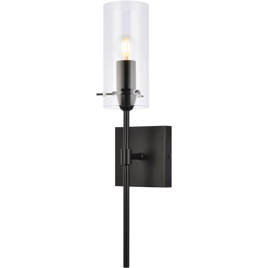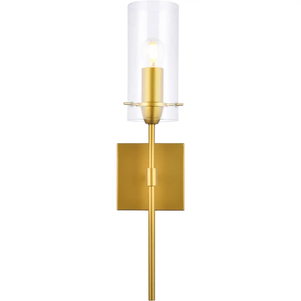 Brighten your space with the Elsreth Collection wall sconce. The cylinder glass and straight arm creates a modern candle lit look. Available in black or brass finish this lamp will illuminate the room. This product is dimmable and requires one E26 socket. Light bulbs not included.