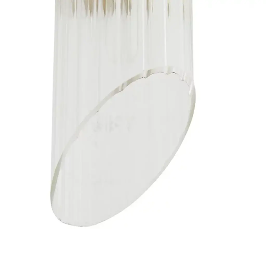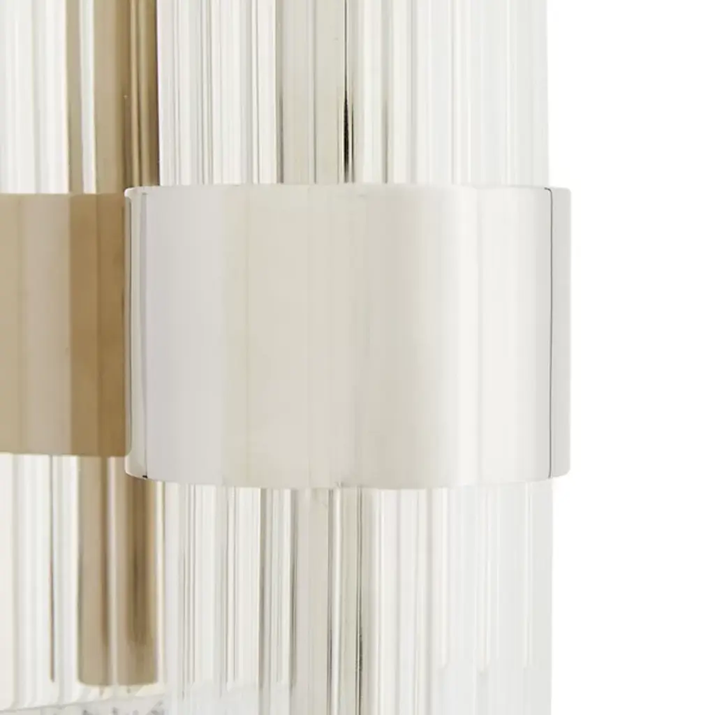 A fluted silhouette singing a graceful tone. Bring harmony to your modern or traditional home with the elegant and versatile Elyse Wall Sconce from Arteriors. Tall columns and long hallways are both great candidates for this vertically and horizontally mounting backplate. Passing through a sharp ring, its fluted glass shade dazzles in its linear cuts. Turn it on and watch highlights scatters across the ribbed surface with the same precision as a flutist’s fingers. The culmination of the highlights delivers a clean ambient glow.