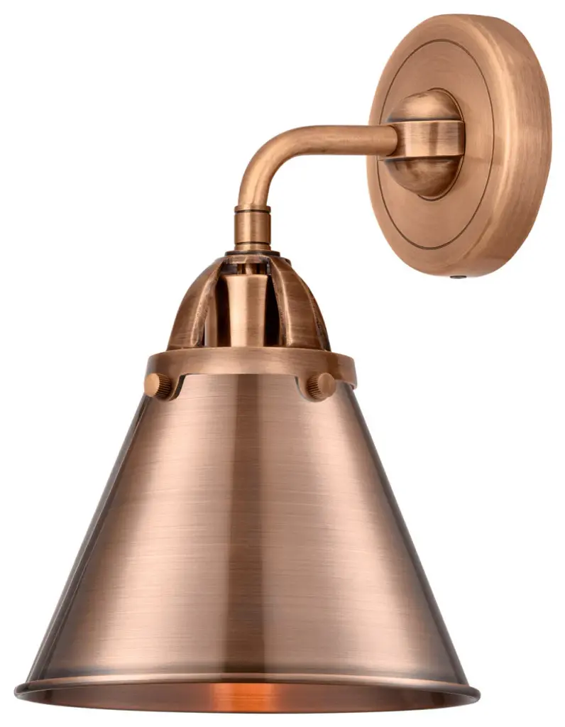 The Emerson Wall Sconce from Alora Mood marks key walls with a sharp combo of shapes and a shimmering light. This sconce’s shapes reference modern and industrial fixtures, making it a versatile visual. Its low-profile metal backplate nestles in tight areas with ease. A slender arm extends a gorgeous ring from the backplate. Held with piercing accents, a shade moves the eyes down with subtle curves and tapering notes. A bulb inside turns on to cast a warm and ambient aura on the nearby wall.