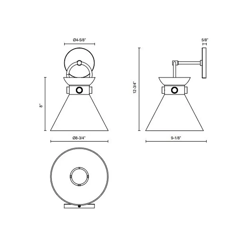 The Emerson Wall Sconce from Alora Mood marks key walls with a sharp combo of shapes and a shimmering light. This sconce’s shapes reference modern and industrial fixtures, making it a versatile visual. Its low-profile metal backplate nestles in tight areas with ease. A slender arm extends a gorgeous ring from the backplate. Held with piercing accents, a shade moves the eyes down with subtle curves and tapering notes. A bulb inside turns on to cast a warm and ambient aura on the nearby wall.
