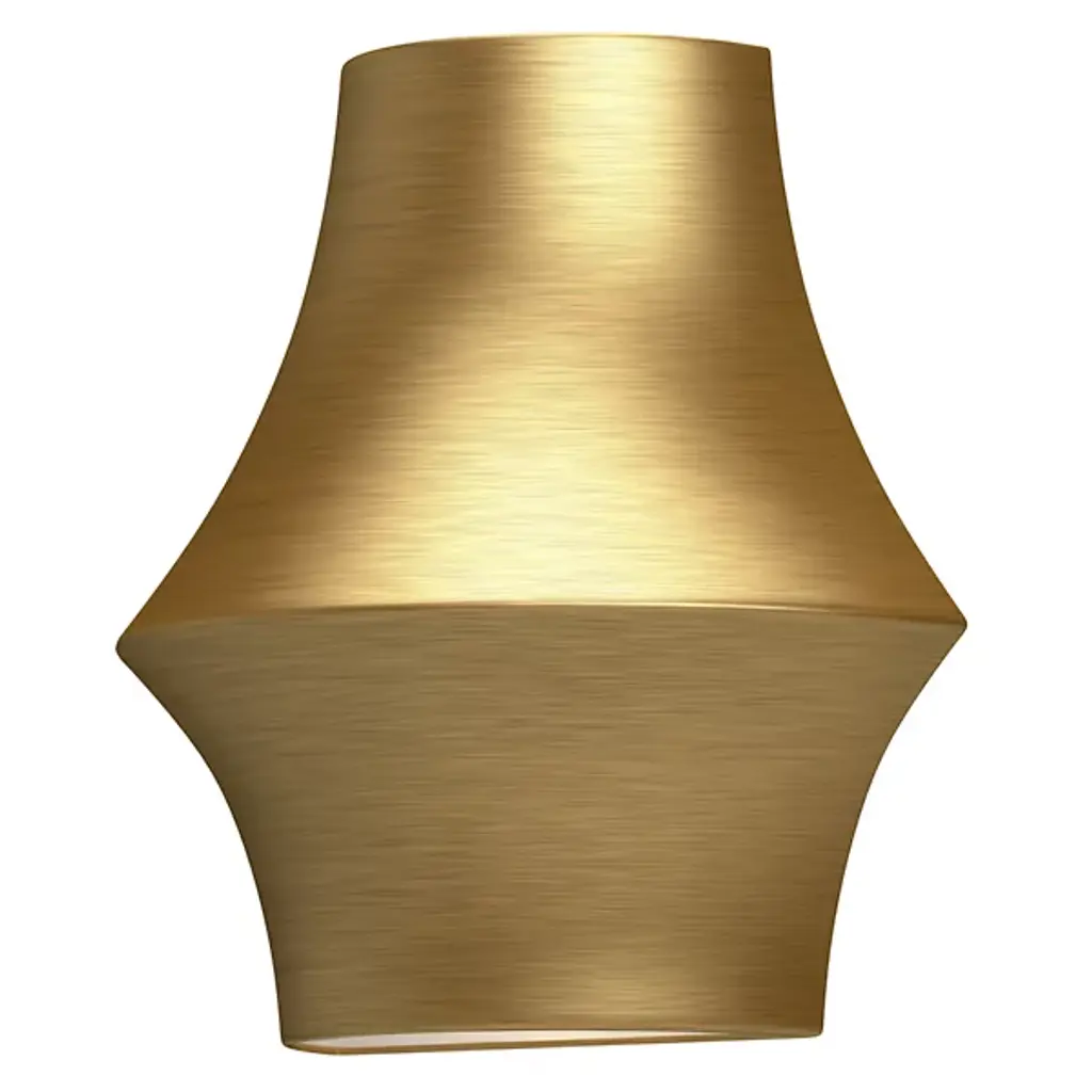 Expand indoor wall spaces with the clever, curving contours of the Emiko Cylindrical Wall Sconce from Alora Mood. Suspended by a smooth metal wall plate, it secures damp-rated lamping inside an offset, curving metal shade with a larger upper section that flares out before dropping to a smaller lower section. This simple arrangement cuts direct glare to the sides, transforming it into an hourglass-shaped wall wash that pours out through each open end of the shade.