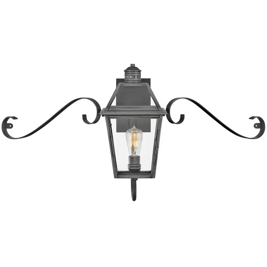 Lend the front entrance a touch of pure luxury with the Emilia Outdoor Applique, featuring a timeless decorative arm. Crafted in stainless steel, the piece is treated with zinc and topped with a powder coated finish to ensure its chic finish over the years. Completing the light's vintage vibe are antique-inspired glass panels.\nBulbs: 3 x E14-