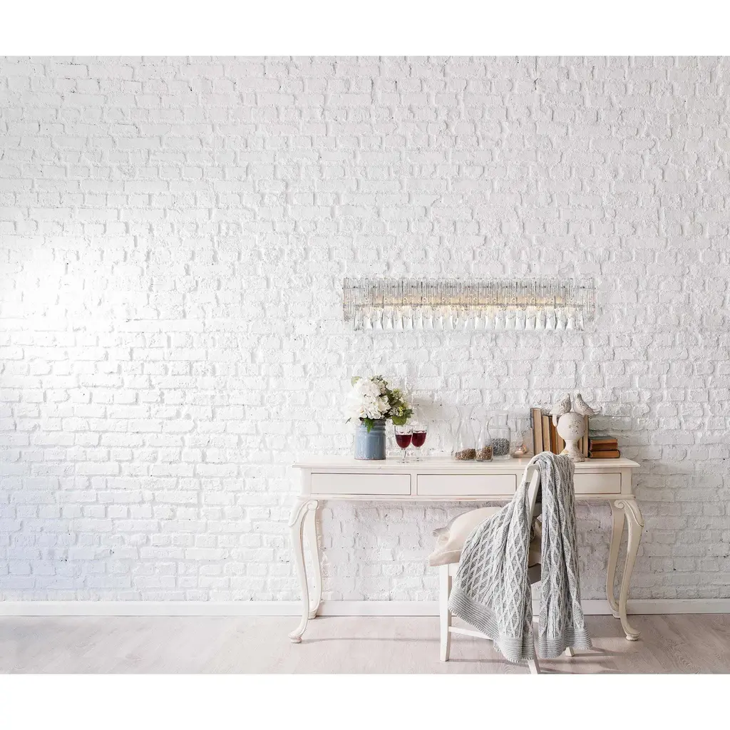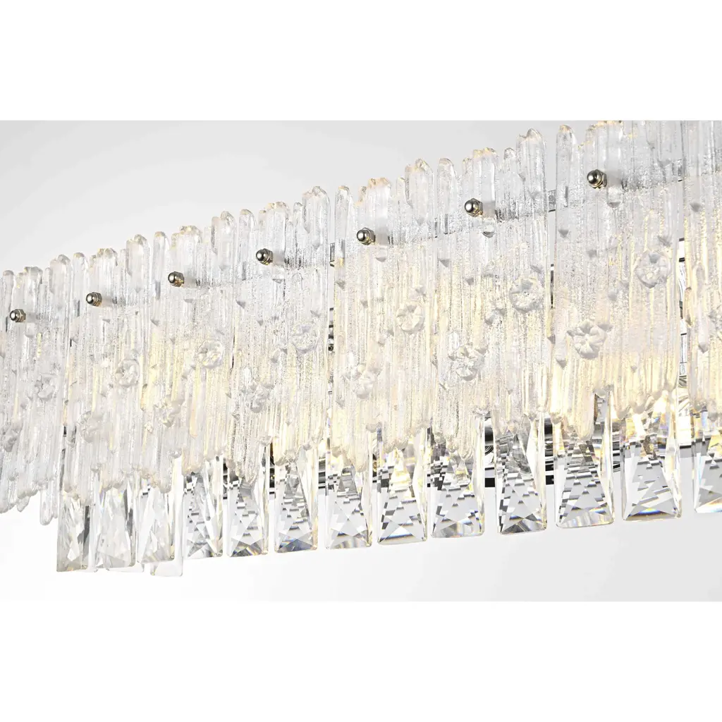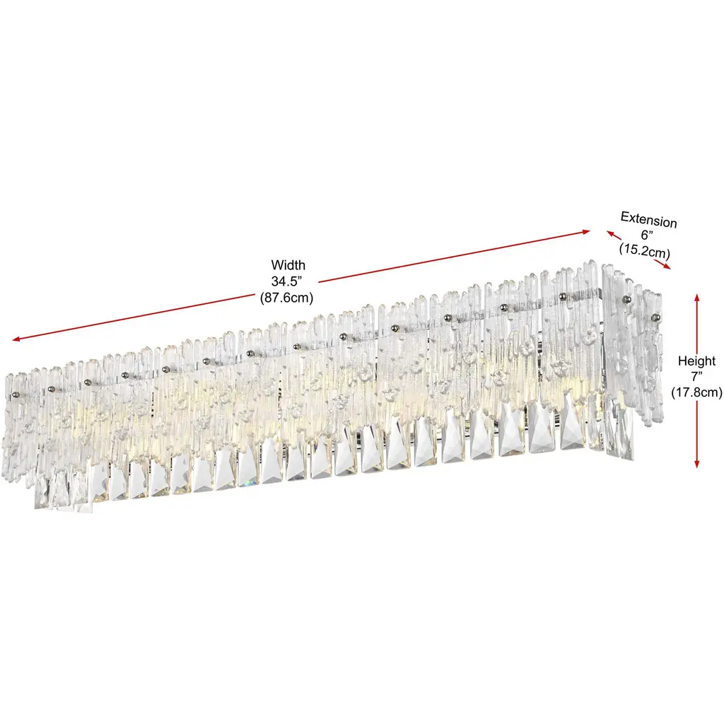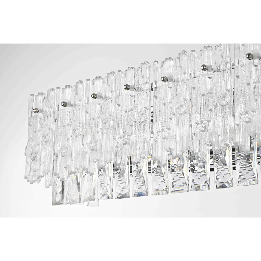 Transform your home with the opulent charm of this indoor lighting, meticulously designed to make a statement in any space. The light fixture showcases an intricate array of precision-cut clear crystals, each expertly faceted to maximize light refraction and create a dazzling display of brilliance. These crystals are complemented by textured glass accents that add depth and visual interest, casting a soft, shimmering glow across the room. Available in your choice of chrome or satin gold finishes, it is the epitome of luxury and modern elegance. As part of a coordinated collection, it also includes matching chandeliers, wall sconces and flush mounts, allowing you to create a harmonious lighting scheme throughout your home.