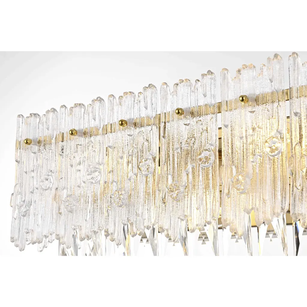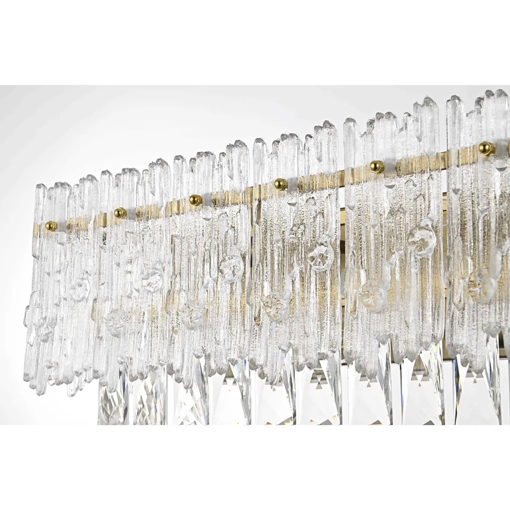 Transform your home with the opulent charm of this indoor lighting, meticulously designed to make a statement in any space. The light fixture showcases an intricate array of precision-cut clear crystals, each expertly faceted to maximize light refraction and create a dazzling display of brilliance. These crystals are complemented by textured glass accents that add depth and visual interest, casting a soft, shimmering glow across the room. Available in your choice of chrome or satin gold finishes, it is the epitome of luxury and modern elegance. As part of a coordinated collection, it also includes matching chandeliers, wall sconces and flush mounts, allowing you to create a harmonious lighting scheme throughout your home.
