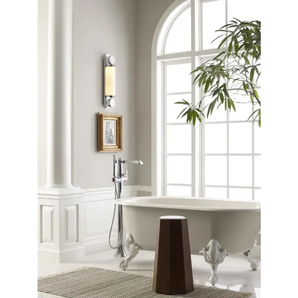 Intended to enhance any space, regardless of aesthetic, era, or application, the Emmons Sconce is the epitome of timeless elegance. A marriage of materials— including metal, glass, and honed Carrera marble— creates a design that looks as beautiful flanking a bathroom vanity as it does lining a hallway. The pair of honed Carrera marble spheres perfectly frame the center column of glass. This piece can be installed vertically or horizontally to great effect. This sconce is damp-rated.