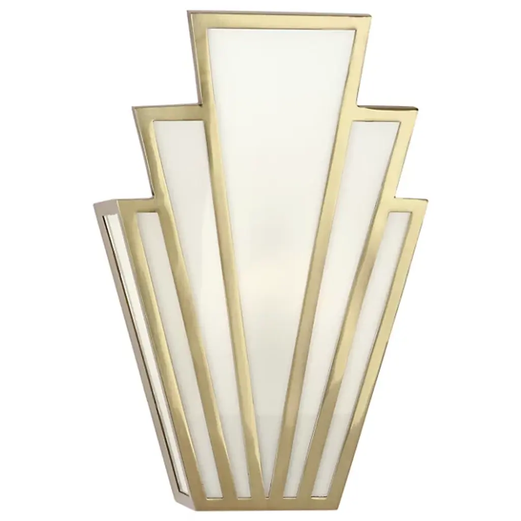 The Empire Wall Sconce by Robert Abbey reimagines art deco design for the modern era, featuring stepped framework filled with White Glass panels that builds toward the center. Its regal persona, rife with strong lines and dynamic angles, is complemented by soft, even lighting which creates a sophisticated ambiance in entryways, hallways, and open living spaces.