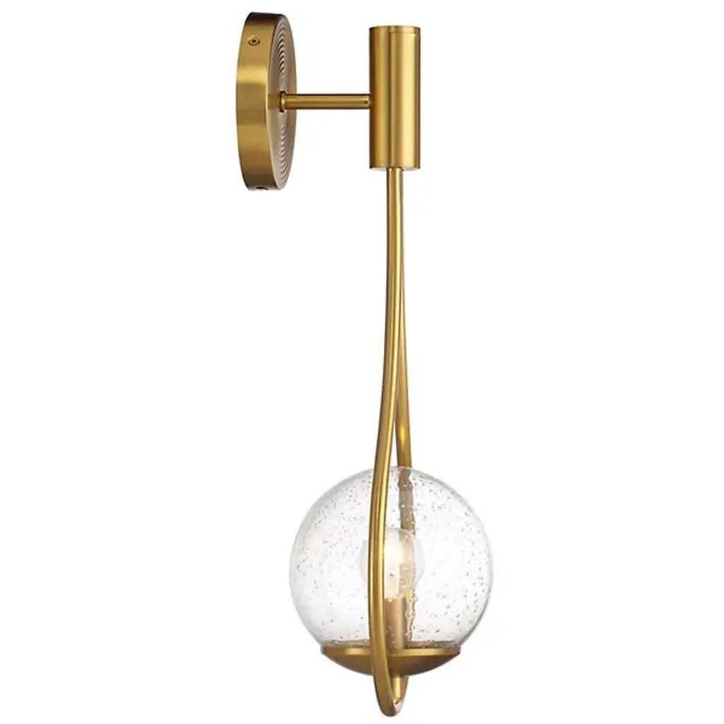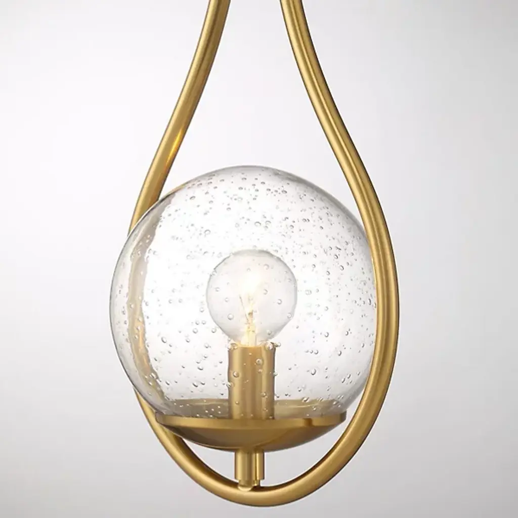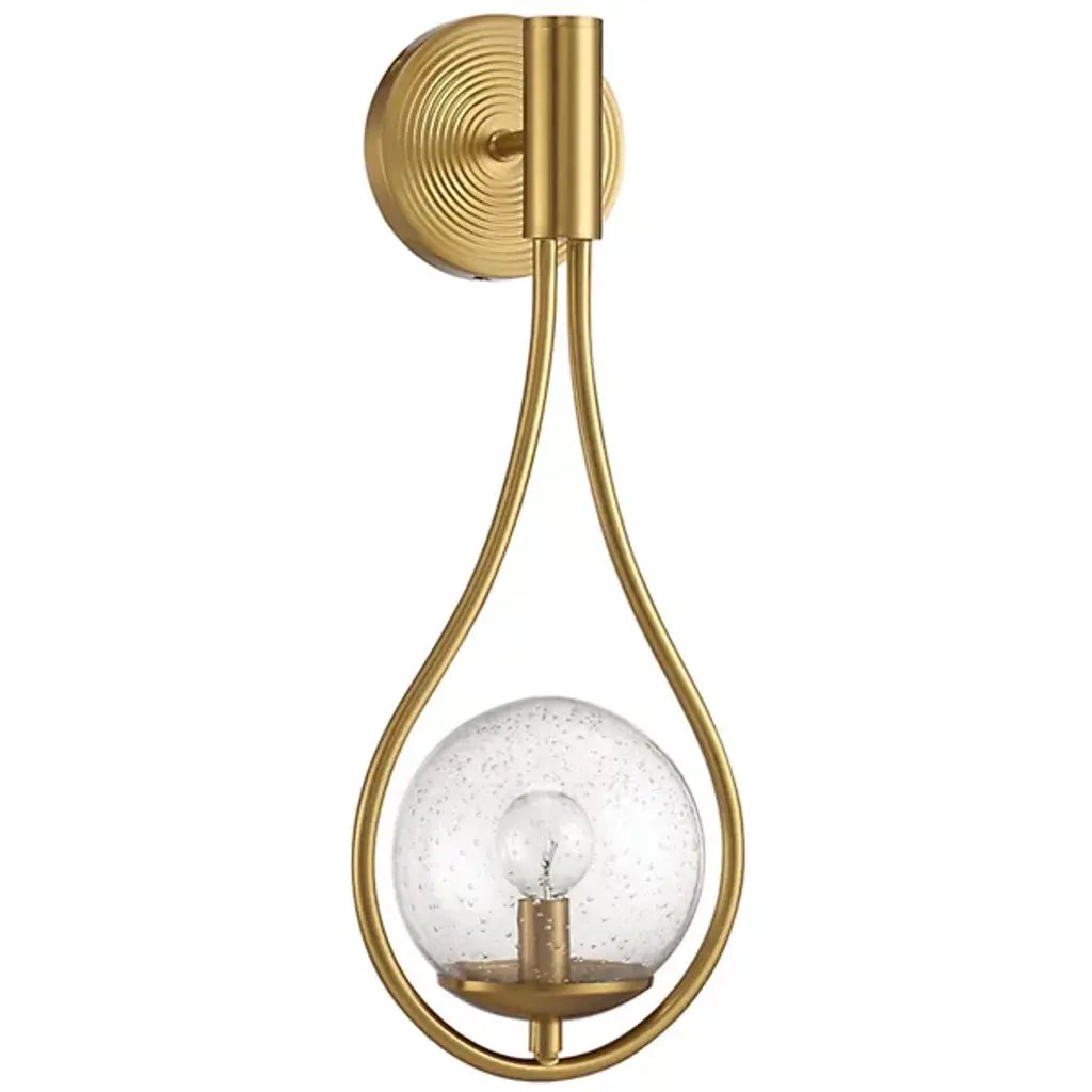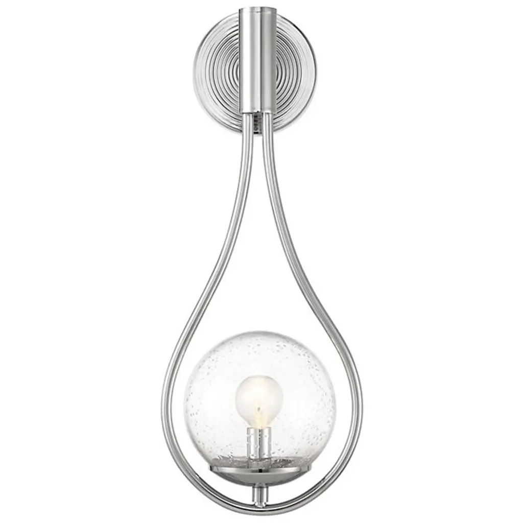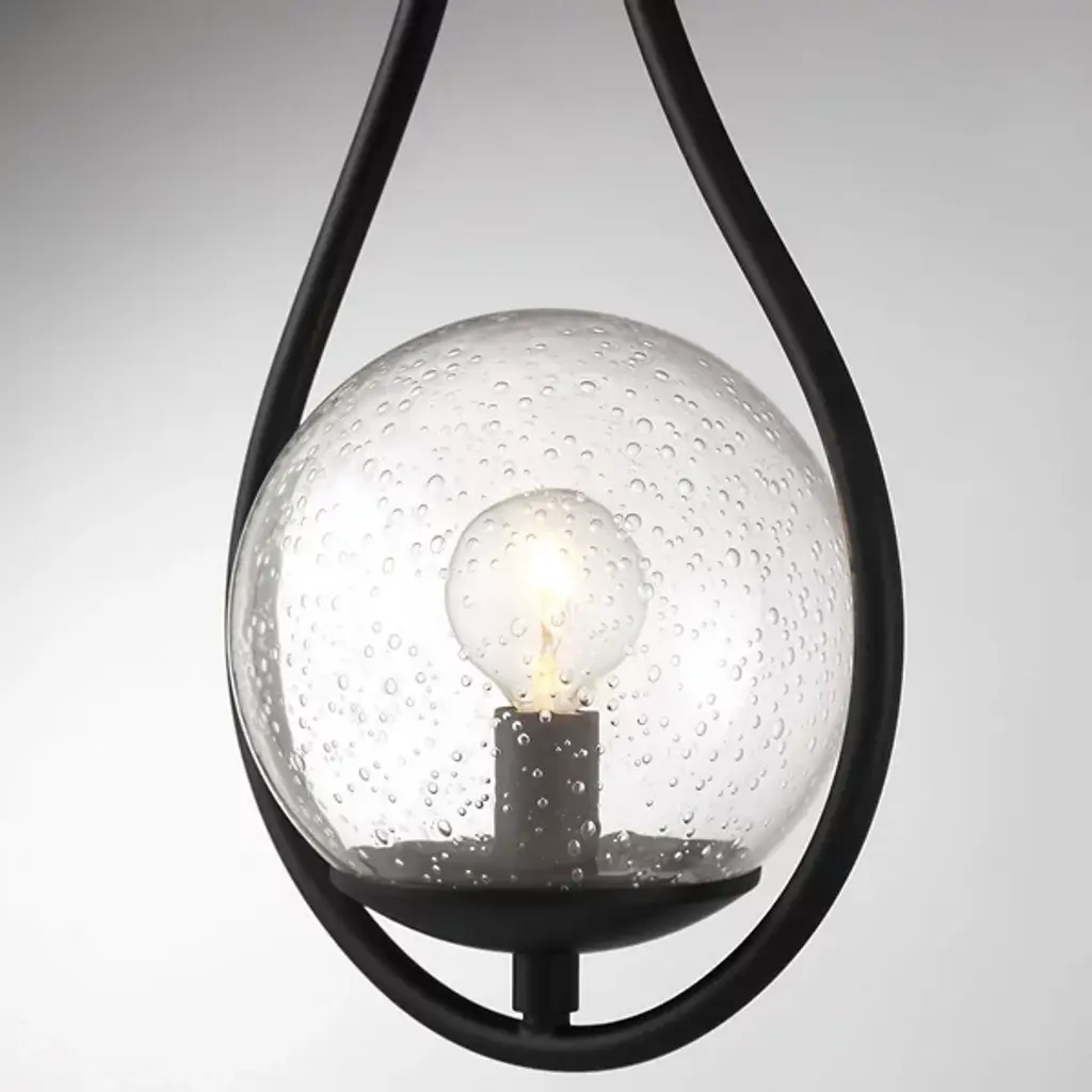 The Encino Wall Sconce from Savoy House introduces a striking blend of transitional style and sophisticated illumination. Its teardrop shape is accentuated by a clear seeded glass orb, which enhances the texture and visual interest. This elegant sconce offers a captivating light source that complements a variety of interiors, infusing any space with charm and modern appeal. The slim metal frame provides a refined accent, while damp-listed lamping enhances its versatility.