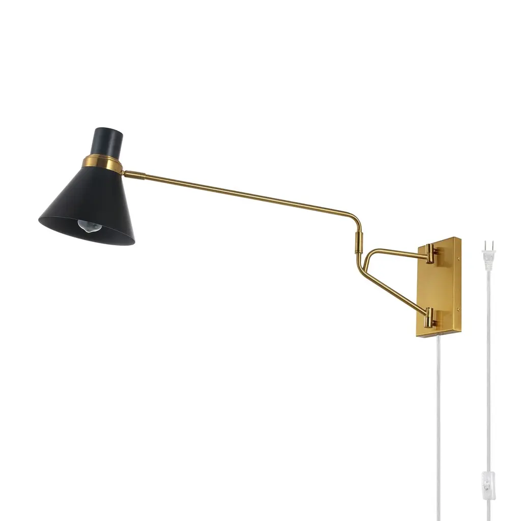 Embrace the sleek style and functionality of our wall sconce. Our plug-in wall sconce updates task lighting with sophisticated details and functionality. It features a cone-shaped metallic shade for a sleek and modern touch. A streamlined and adjustable arm helps to focus light just where you need it. The wall sconce adds polish and sophistication to any corner. The wall sconce remains perfect for adding character to your home office or creating a reading nook in your bedroom or lounge.